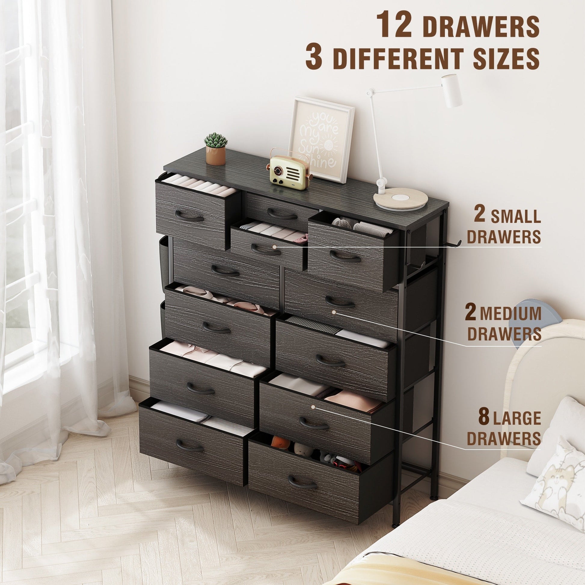 - 【Grand espace de rangement】Capacité spacieuse avec 12 tiroirs en tissu profonds. 3 tailles différentes de coffres à tiroirs en tissu sont idéales pour organiser vos vêtements, couvertures, écharpes, chaussettes et autres.