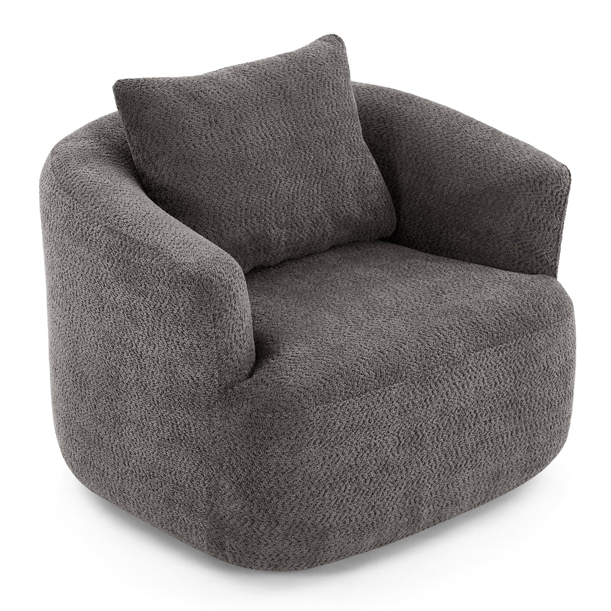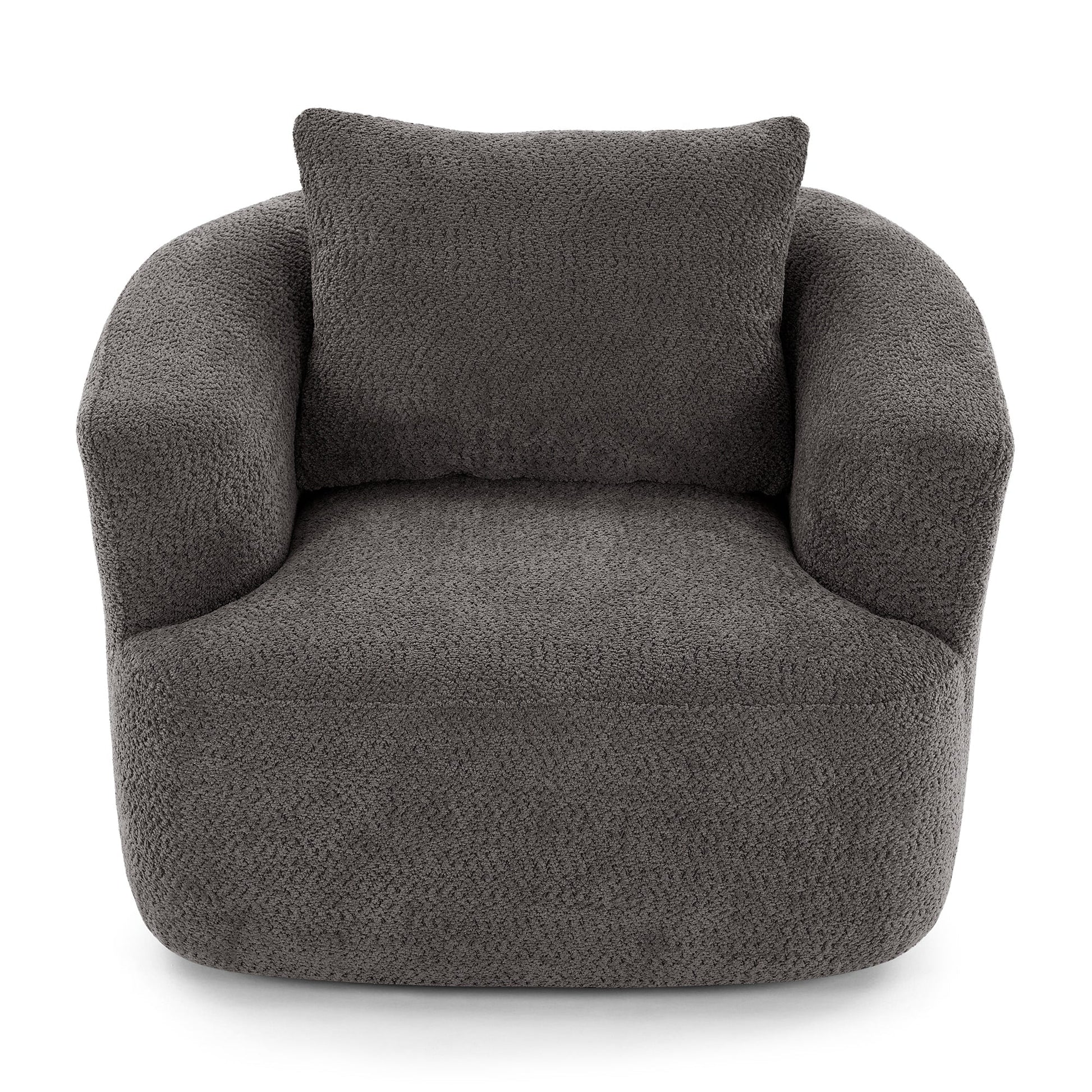 Fauteuil pivotant à 360°, fauteuil d'appoint Boucle 38,2 avec coussin décoratif, fauteuil tonneau rembourré avec accoudoirs incurvés