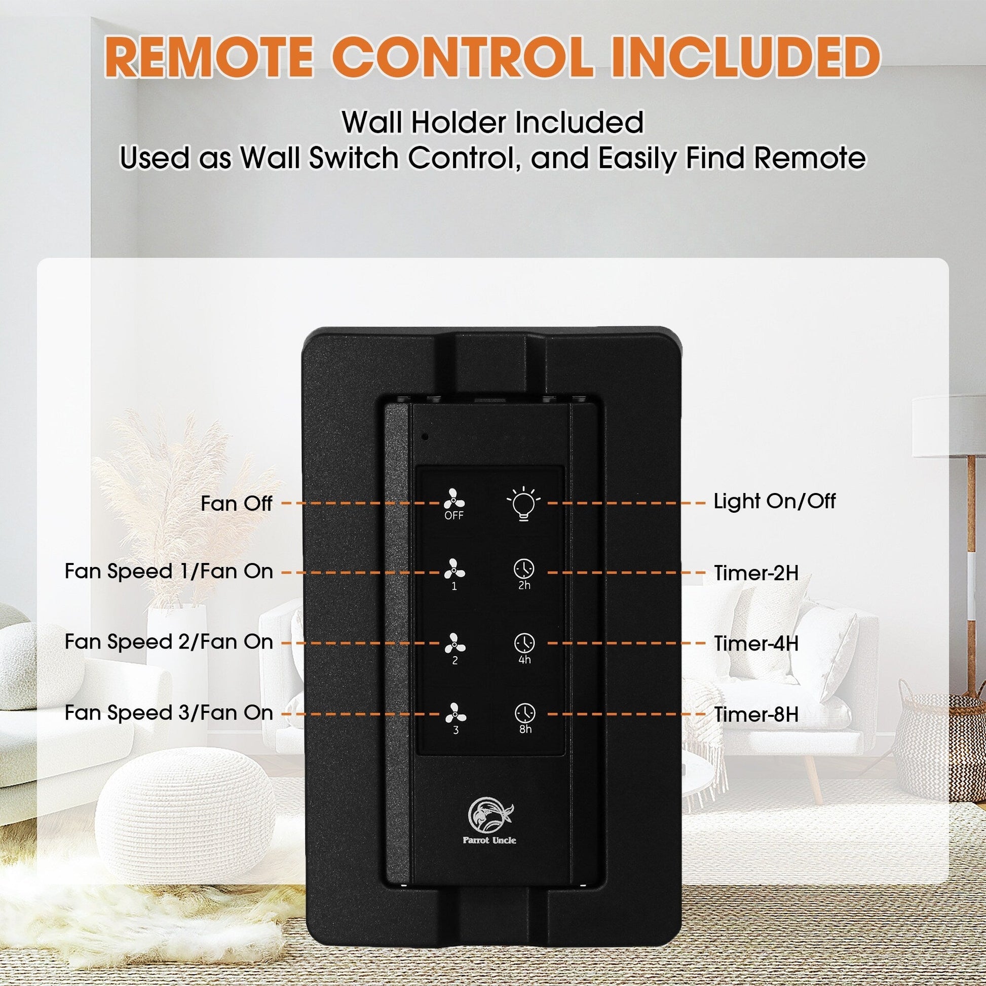 - Télécommande portable incluse pour régler la vitesse du ventilateur et allumer/éteindre la lumière séparément