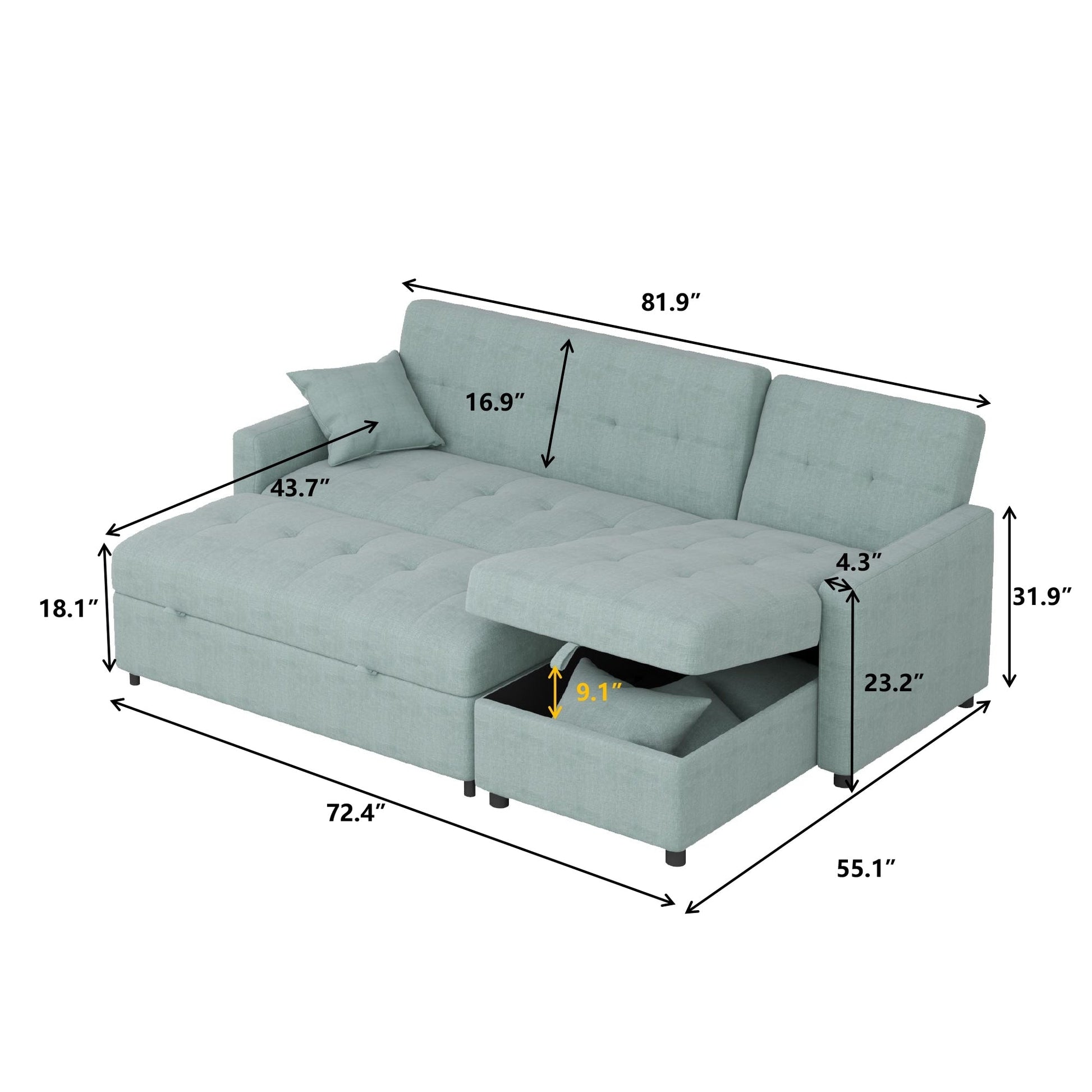 Canapé-lit et chaise longue réversibles de 82 po de large