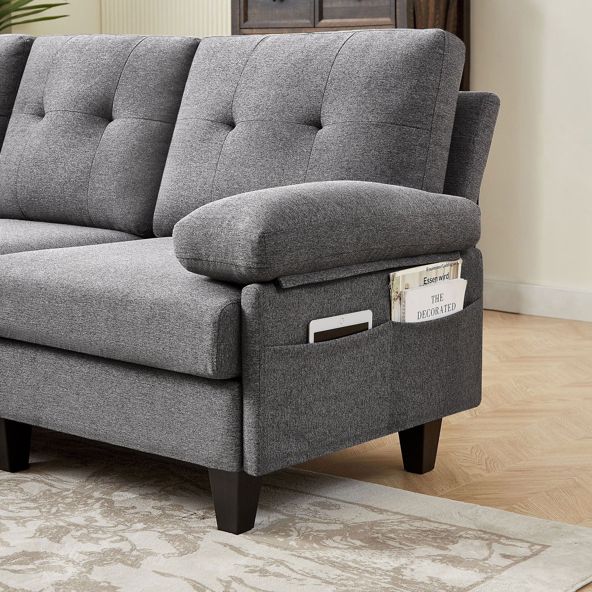 Canapé sectionnel en L 86,22 pouces avec poches de rangement latérales