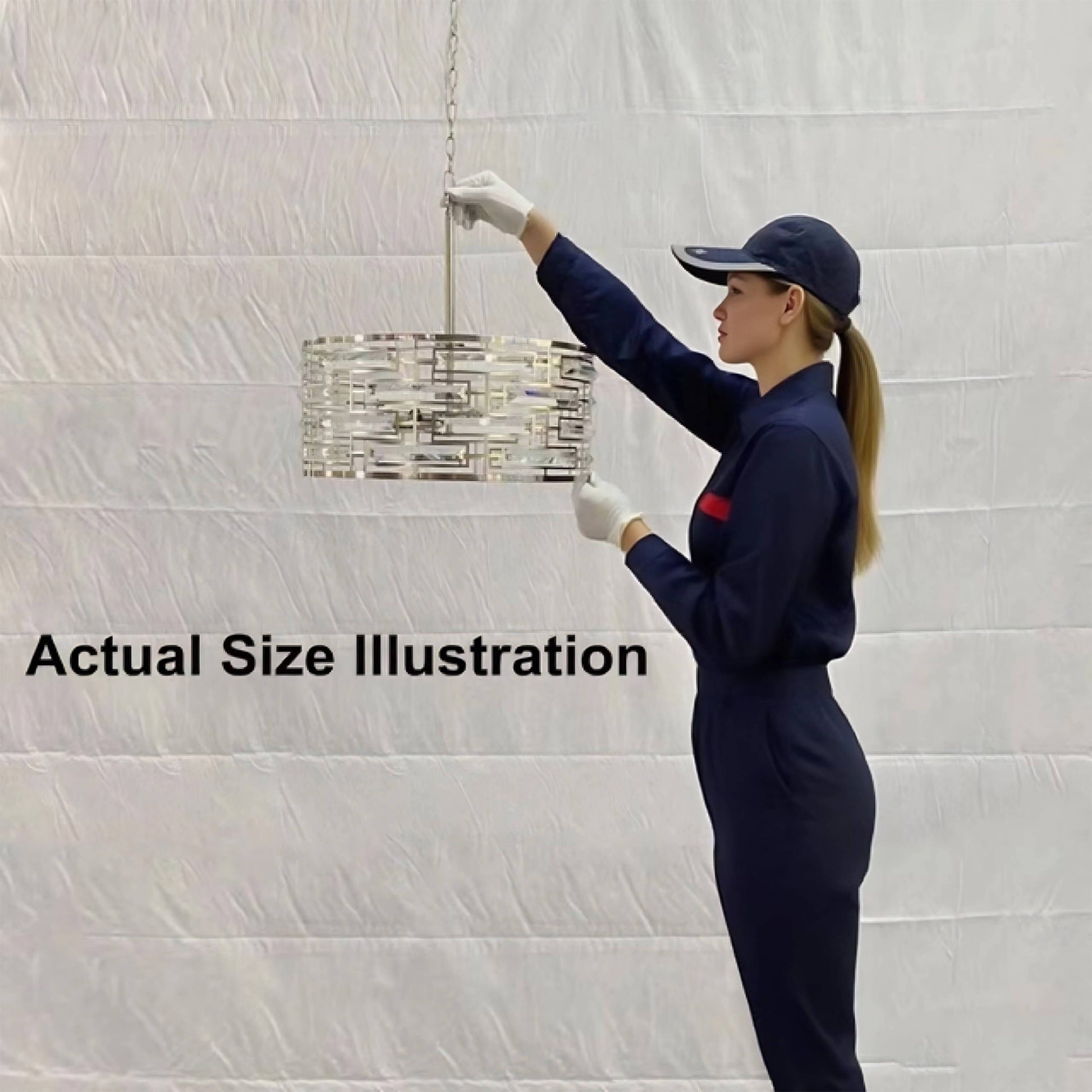 Titre : Lustre Anita Drum Shade avec prisme en verre transparent