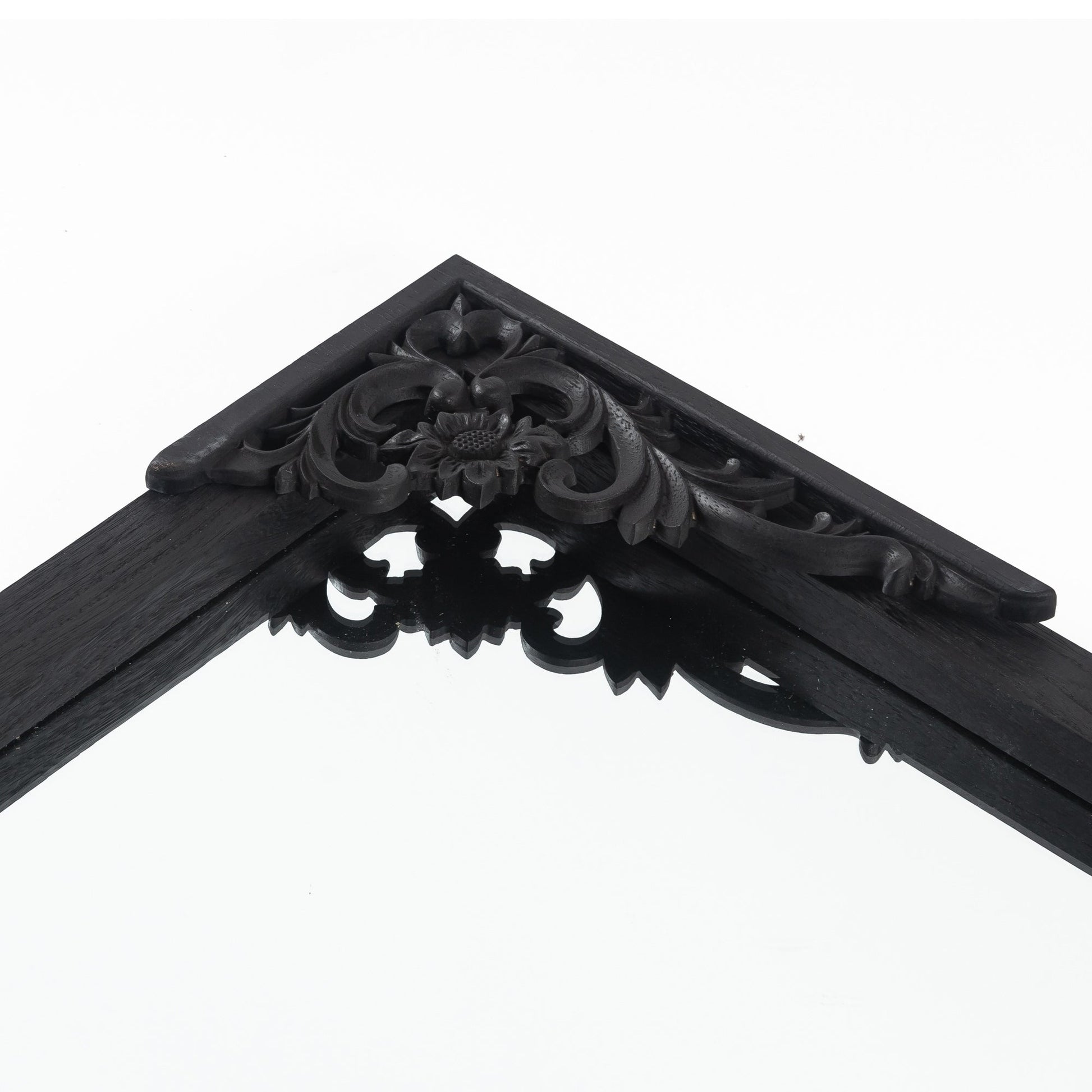 Miroir de sol sculpté en bois massif de forme arquée sur toute la longueur