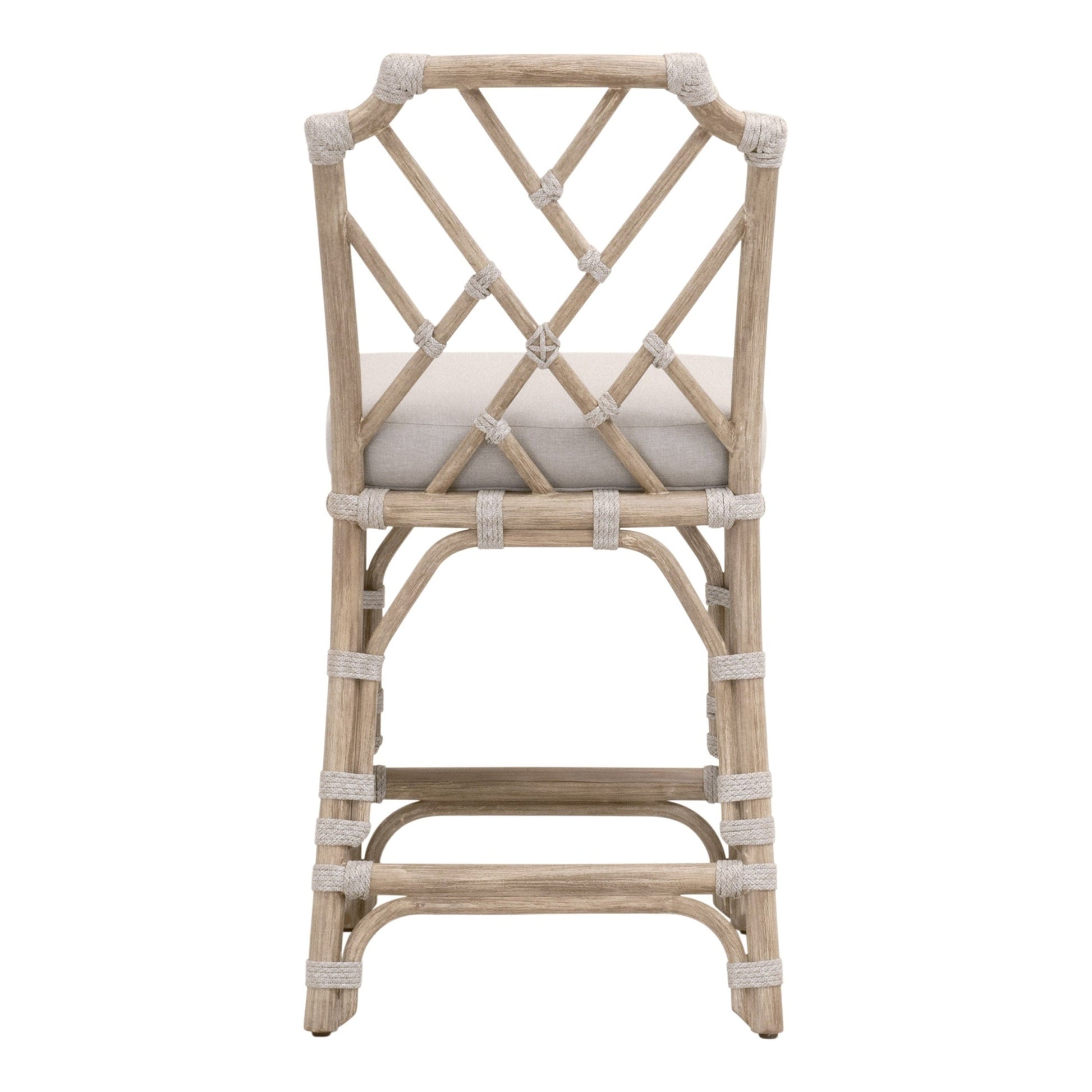Apportez un charme côtier décontracté à votre salle à manger avec le tabouret de bar Bayview d'Essentials For Living. Fabriqué à la main en acajou massif et finement enveloppé d' une corde plate taupe et blanche , ce tabouret présente un dossier léger et artisanal qui évoque la douceur tropicale et l'élégance naturelle.