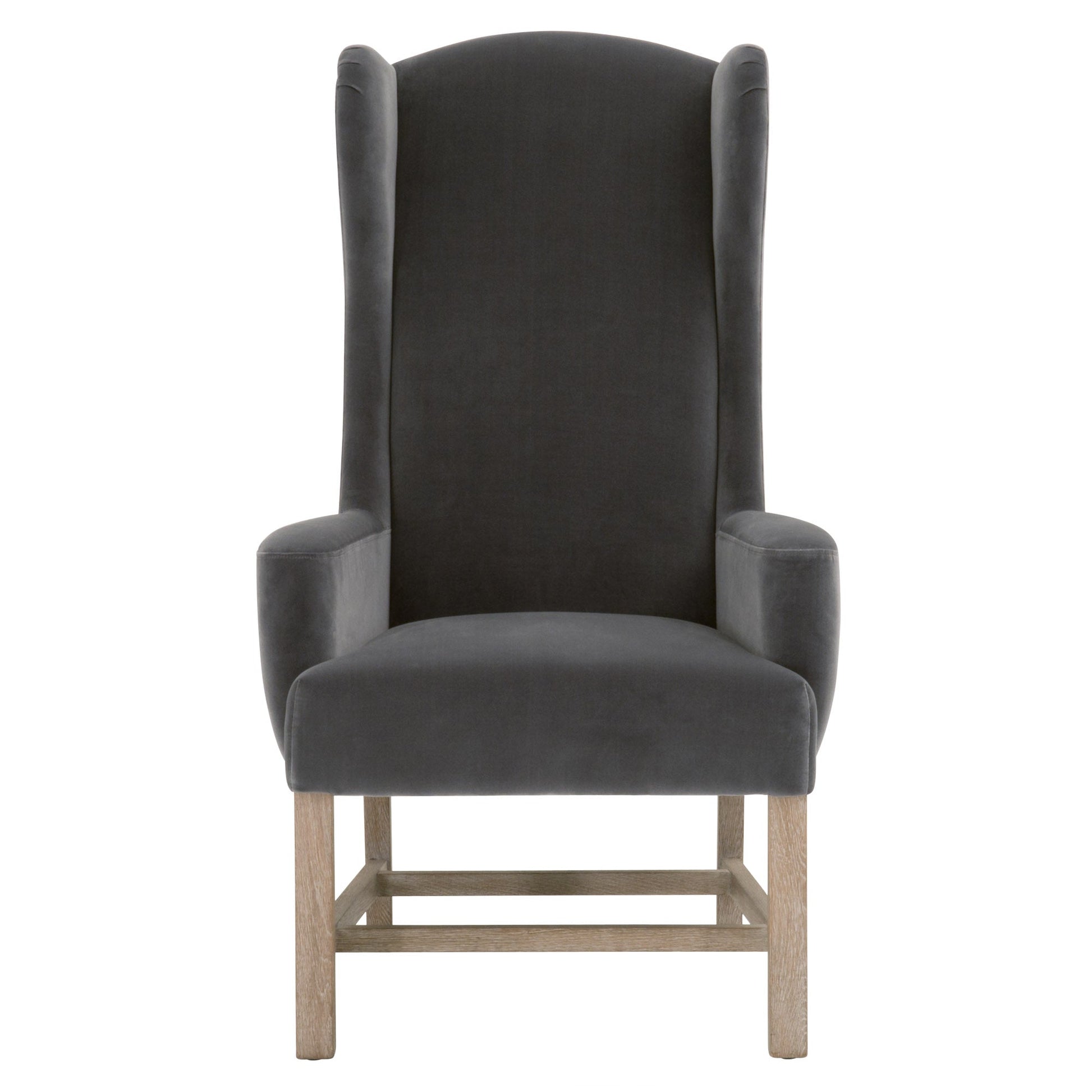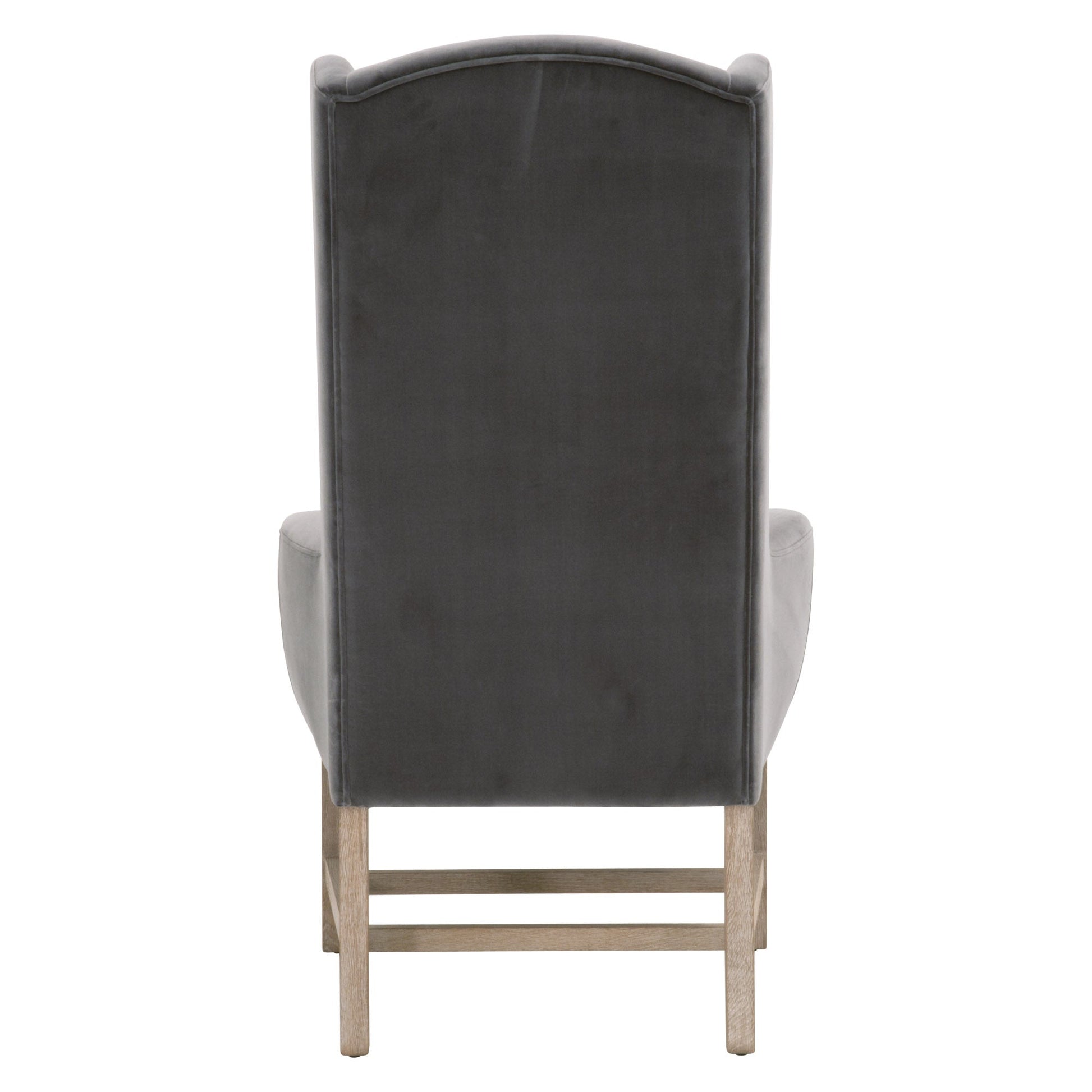 Son dossier haut et incurvé se prolonge harmonieusement par des côtés ailés et des accoudoirs légèrement inclinés, créant une forme gracieuse aussi confortable que raffinée. Les pieds en chêne massif aux nuances de gris naturel offrent un contraste neutre et naturel, tandis que les entretoises intégrées assurent une stabilité accrue et une structure durable. Placée en bout de table à manger ou comme fauteuil d'appoint dans le salon, la chaise Bennett allie élégance intemporelle et polyvalence.