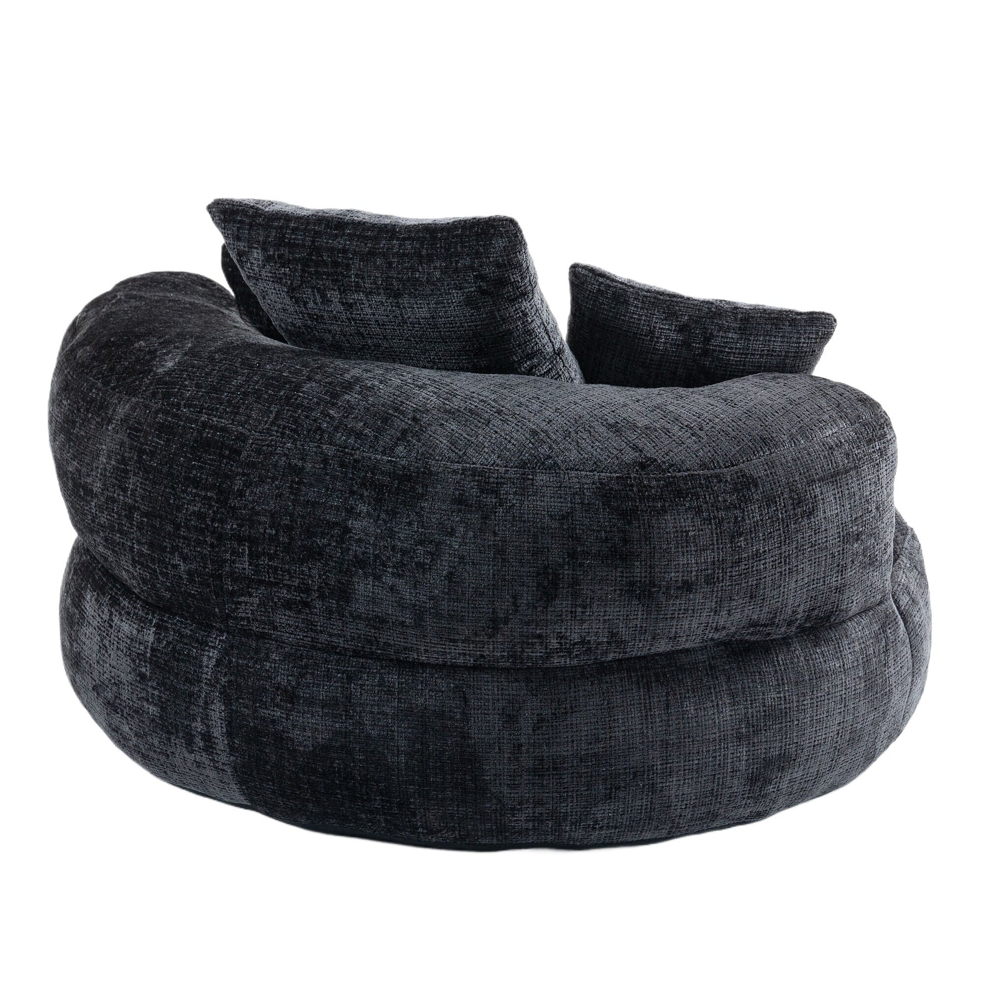Pouf simple surdimensionné en chenille noir de 42,52 pouces avec trois oreillers pour chambre à coucher