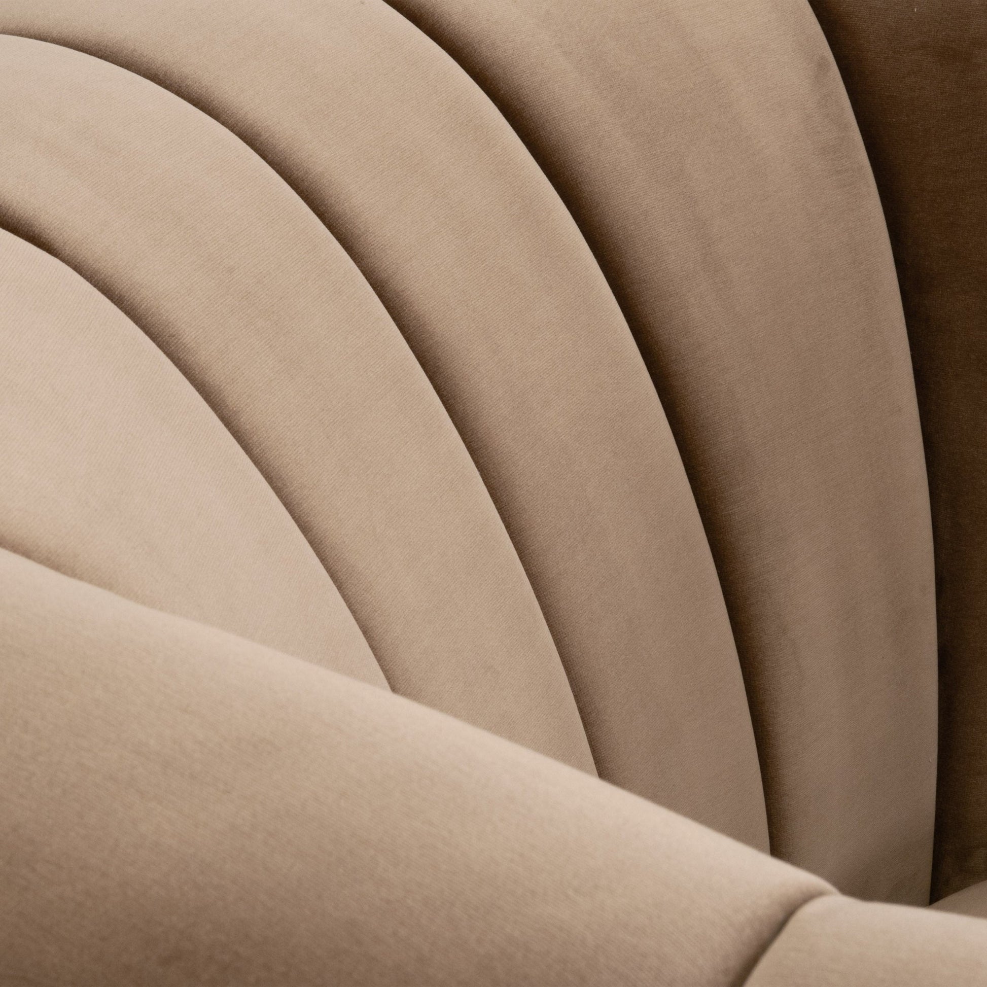 Le fauteuil Bronx Channel Back d'Essentials For Living apporte un style intemporel et un confort douillet à tout espace de vie transitionnel. Revêtu d'un luxueux velours caramel, cet élégant fauteuil arbore des surpiqûres verticales le long de son dossier incurvé et repose sur des pieds en chêne naturel apparents pour une finition chaleureuse et sophistiquée.