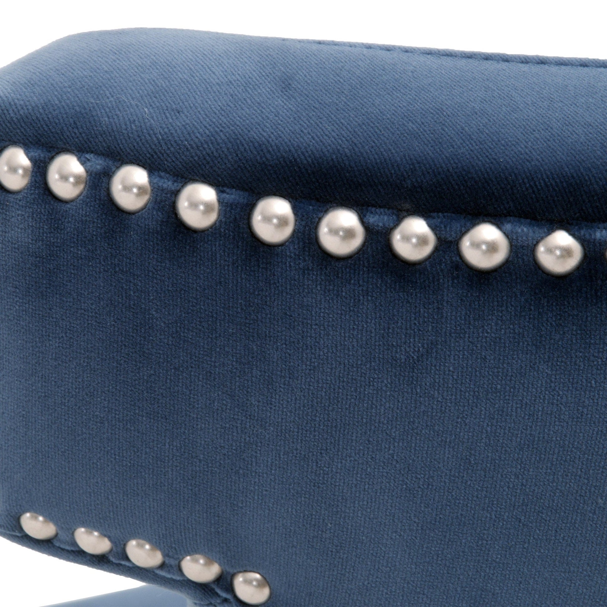 Revêtue d'un riche velours bleu denim, la Celina présente une silhouette gracieusement sculptée qui apporte une touche d'élégance et de douceur à tout espace. Une ligne de clous argentés brossés souligne l'assise et le dossier, apportant une touche de glamour raffiné. Les pieds en chêne massif finition gris naturel offrent un contraste chaleureux tout en garantissant robustesse et stabilité.