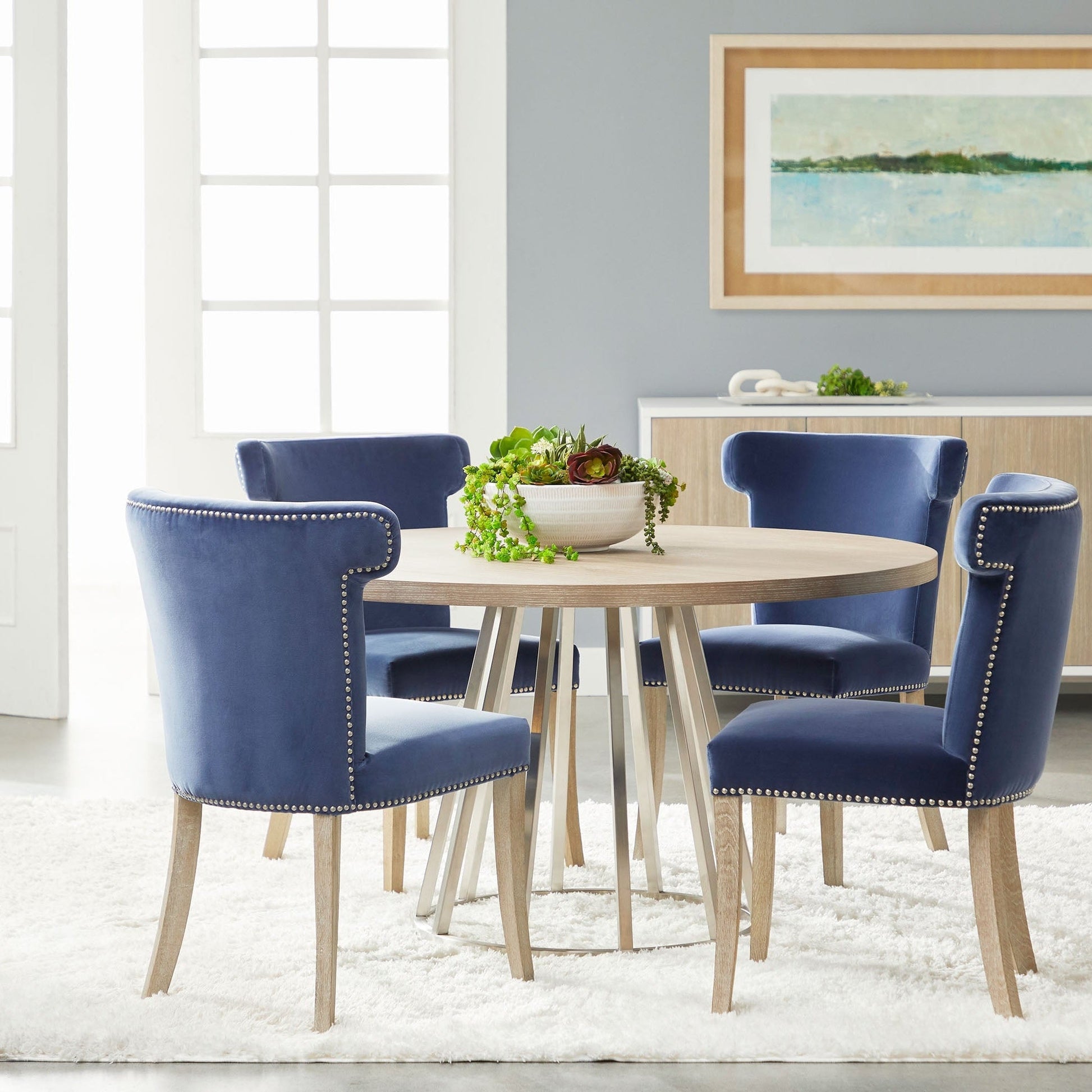 Essentials For Living – Chaise de salle à manger Celina – Velours denim et chêne gris naturel