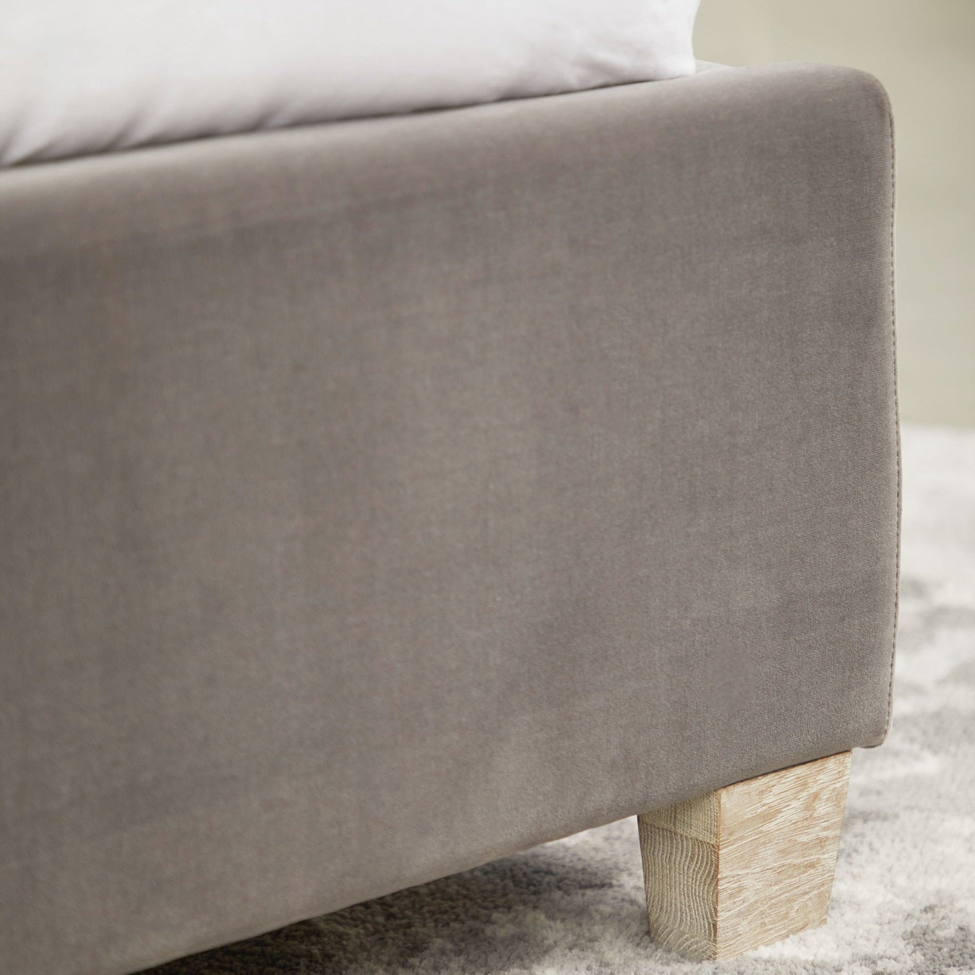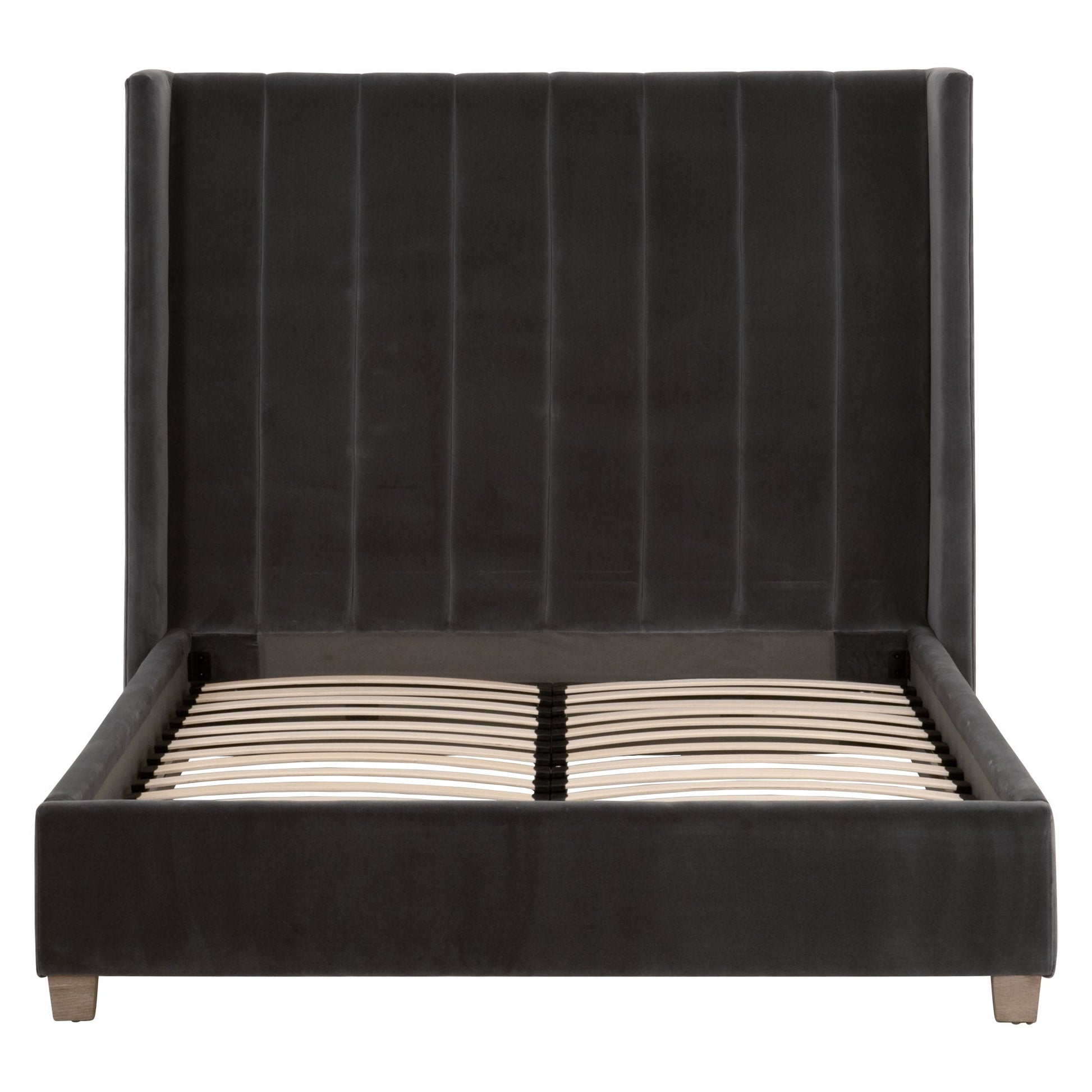 Sublimez votre chambre avec la prestance majestueuse du lit king size Chandler Cal d'Essentials For Living. Ce meuble transitionnel allie sophistication intemporelle et confort moderne, avec son revêtement en velours somptueux et ses pieds apparents en chêne massif finition gris naturel. Ses tons profonds et chaleureux et ses textures moelleuses créent un havre de paix haut de gamme, idéal pour des nuits reposantes et un intérieur élégant.