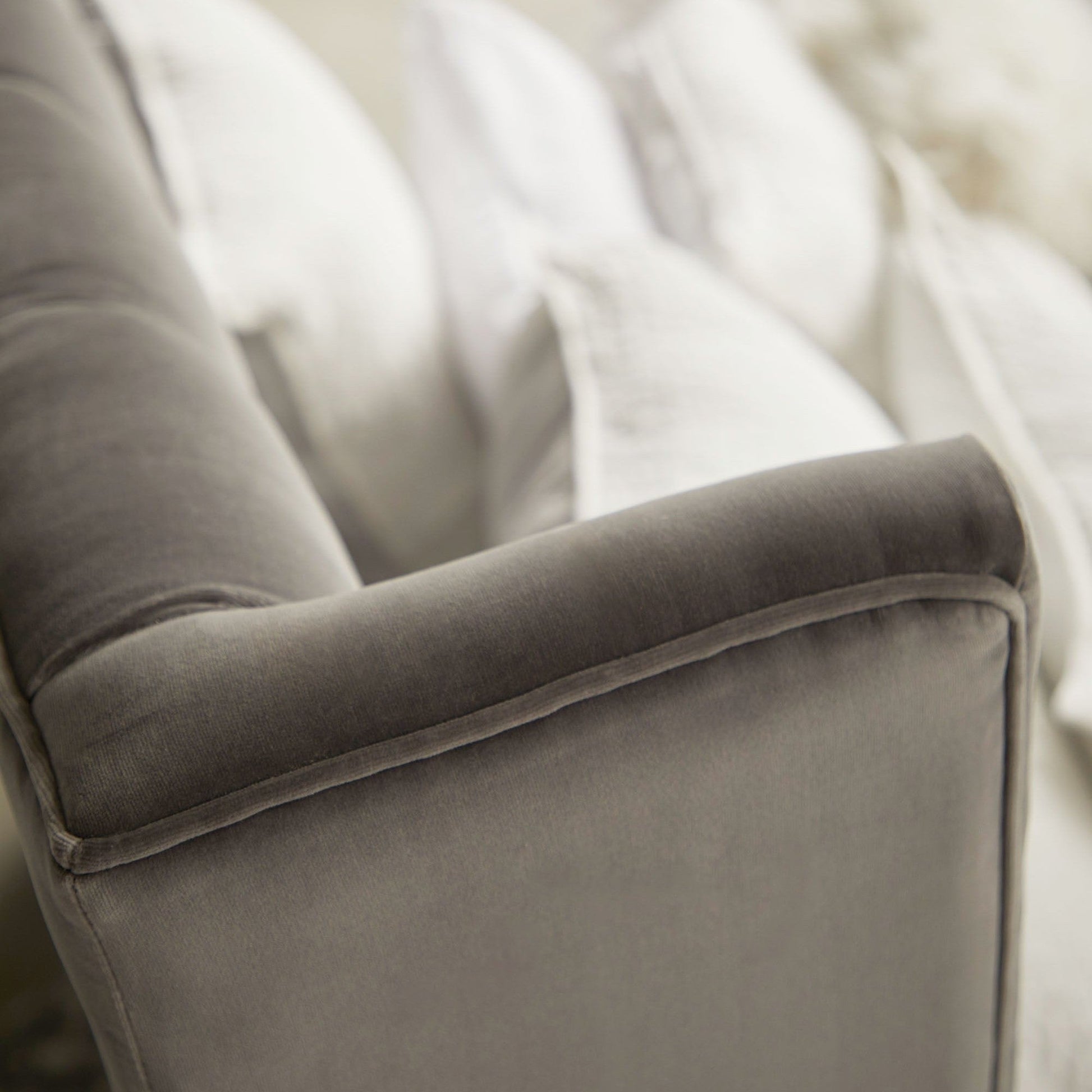 - Les pieds en chêne massif au fini gris naturel ajoutent une texture chaleureuse et organique