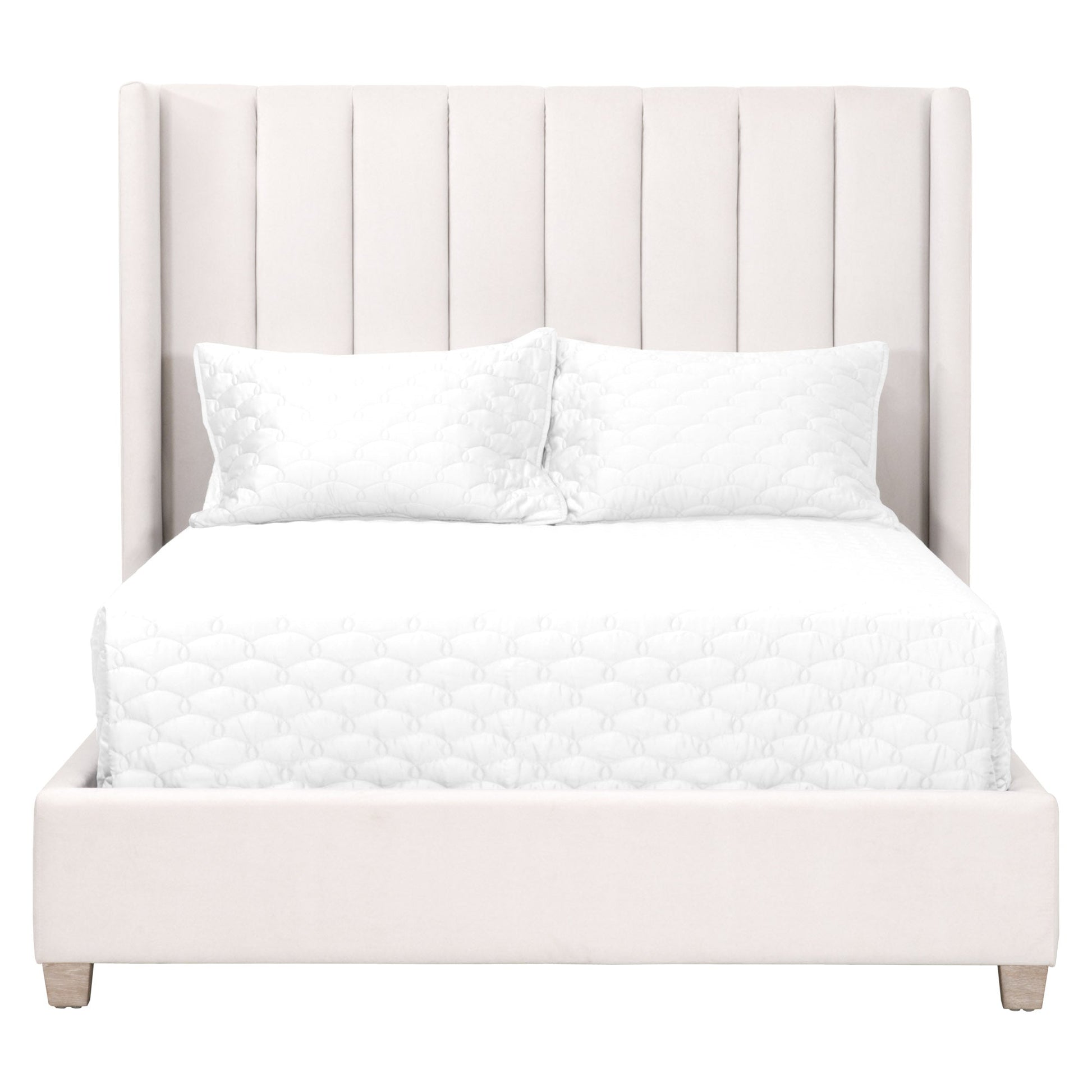 Transformez votre chambre en un havre de paix avec le lit Queen Size Chandler d'Essentials For Living. Revêtu d'un velours doux et soutenu par des pieds en chêne massif finition gris naturel, ce lit transitionnel dégage une élégance raffinée et un charme intemporel. Ses tons clairs et neutres créent une atmosphère apaisante et aérée qui s'intègre parfaitement à de nombreux intérieurs.