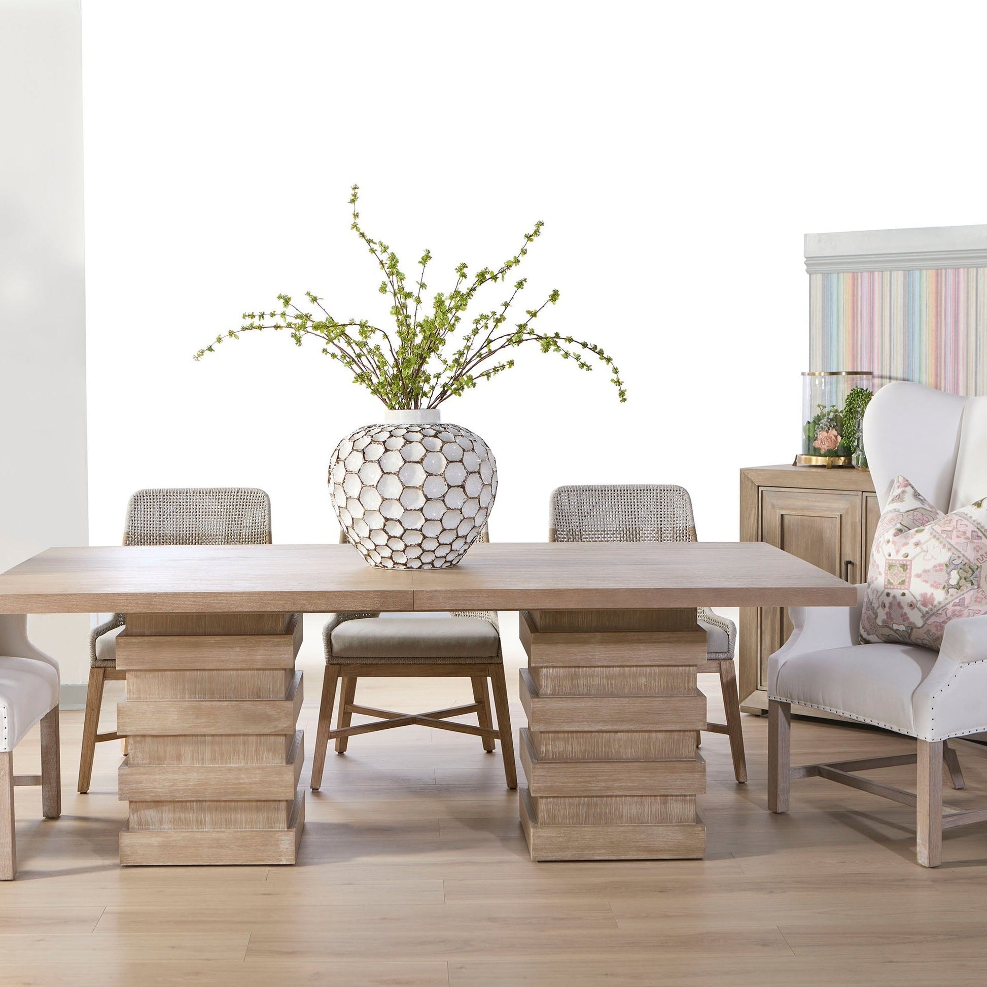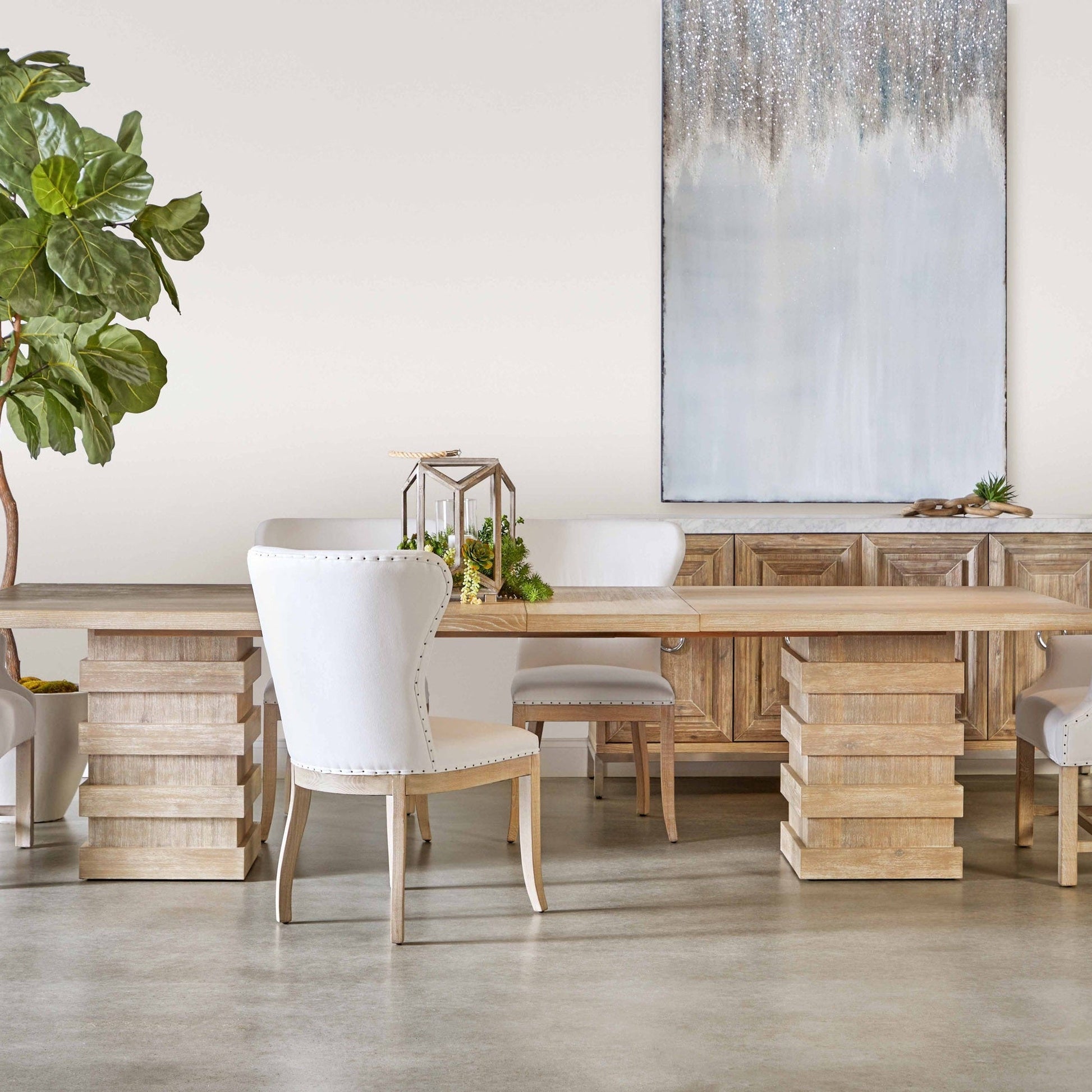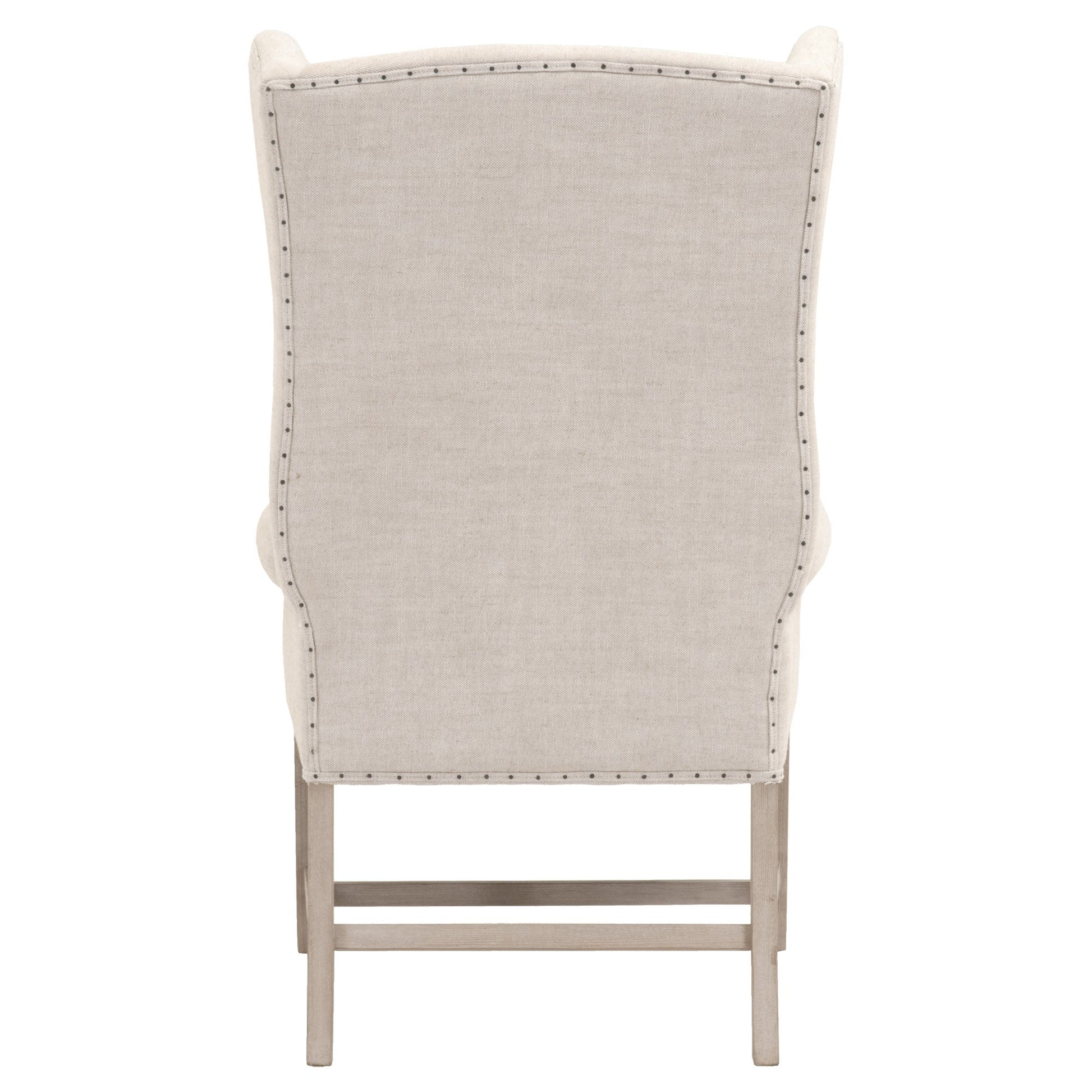 Revêtue de lin bisque haute performance résistant aux taches et ornée de clous appliqués à la main, cette chaise dégage un charme raffiné tout en offrant une praticité au quotidien. Sa structure en frêne massif, finition gris naturel, est équipée d'entretoises pour pieds, pour une solidité et une durabilité accrues.