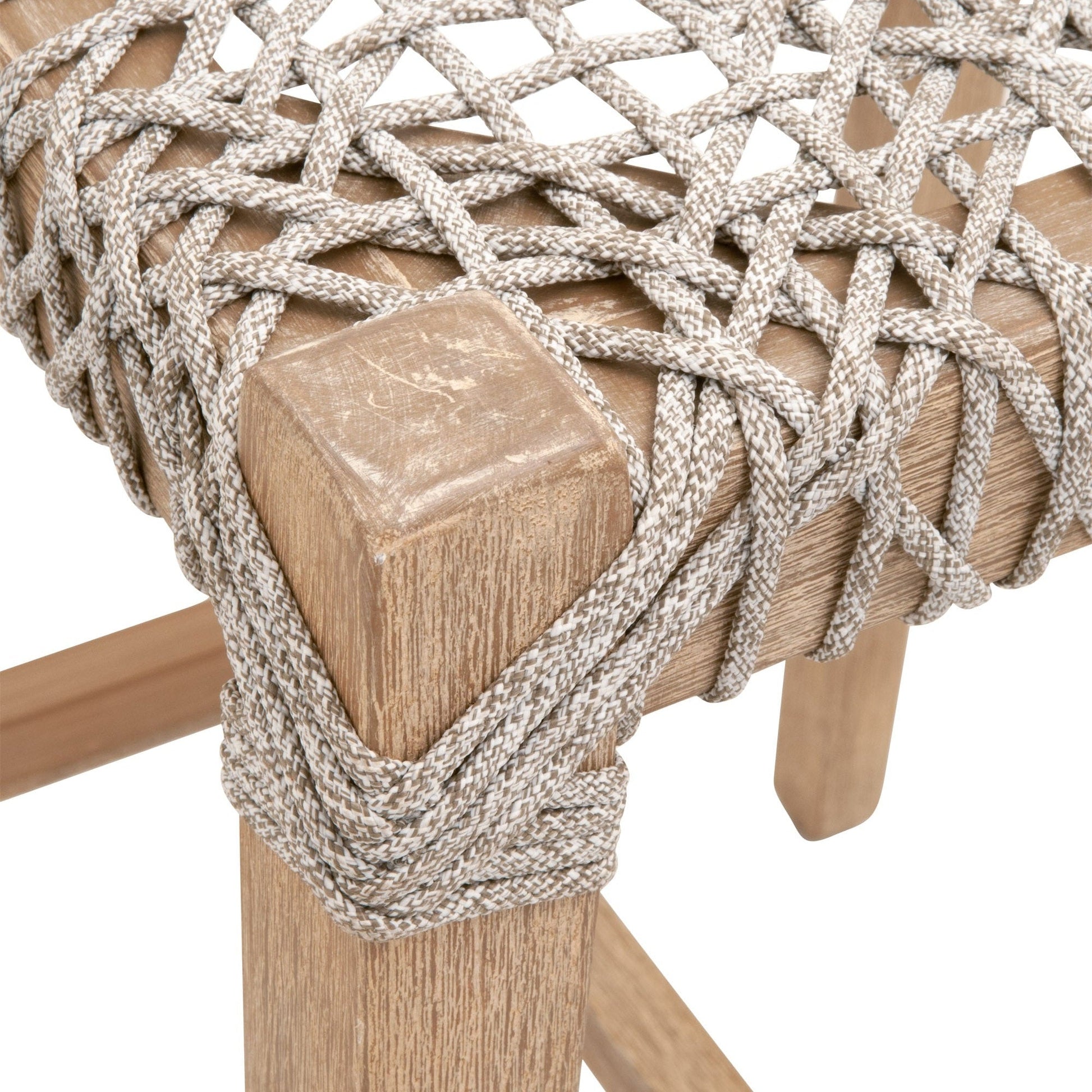Mesurant 43,7 cm de large, 44,5 cm de profondeur et 66 cm de haut, avec une hauteur d'assise de 64,8 cm, ce tabouret au design unique est tressé en corde de polypropylène blanc et taupe, créant un style d'inspiration nautique, parfait pour les intérieurs côtiers, transitionnels ou traditionnels. Le repose-pieds bidirectionnel améliore le confort et le soutien pour une assise prolongée.