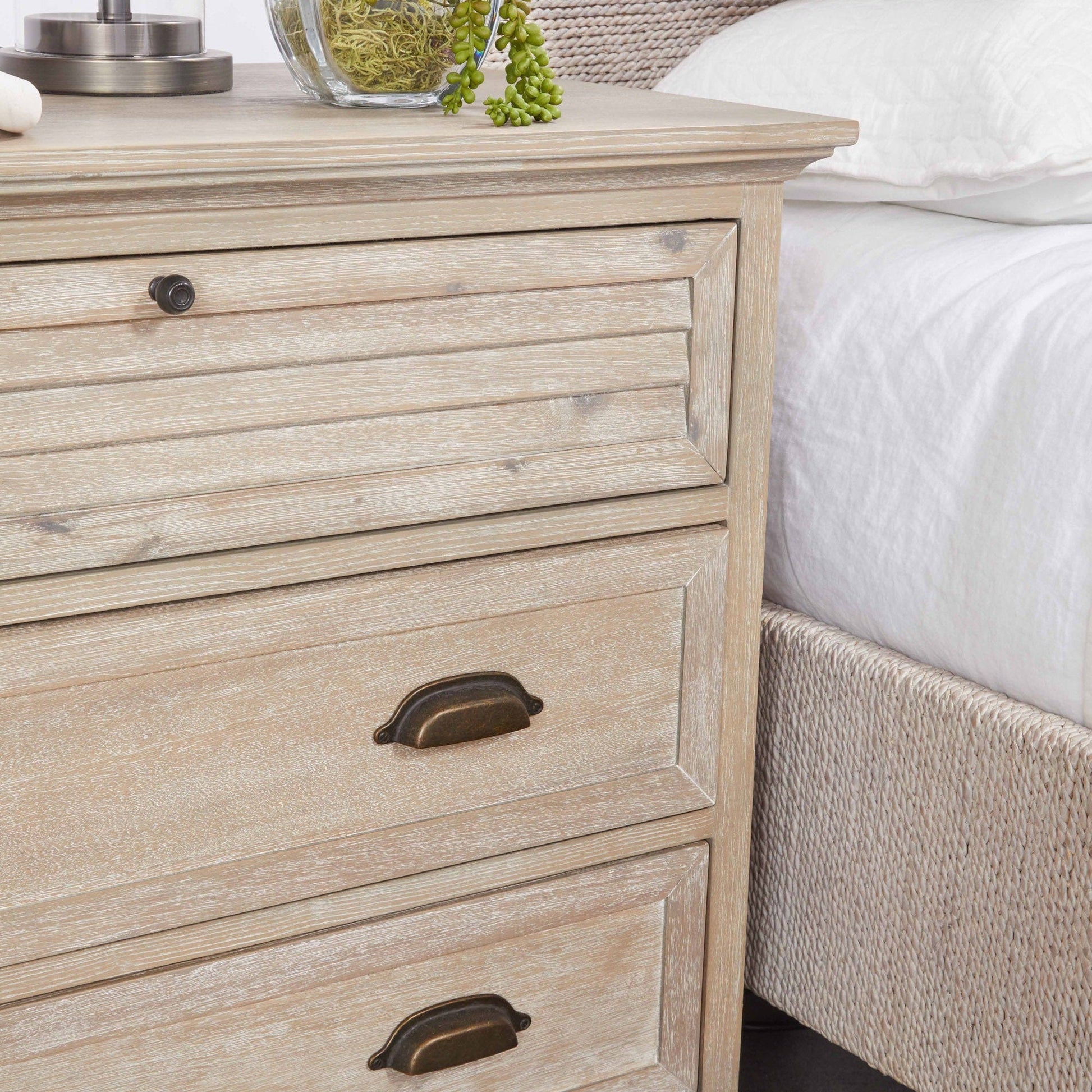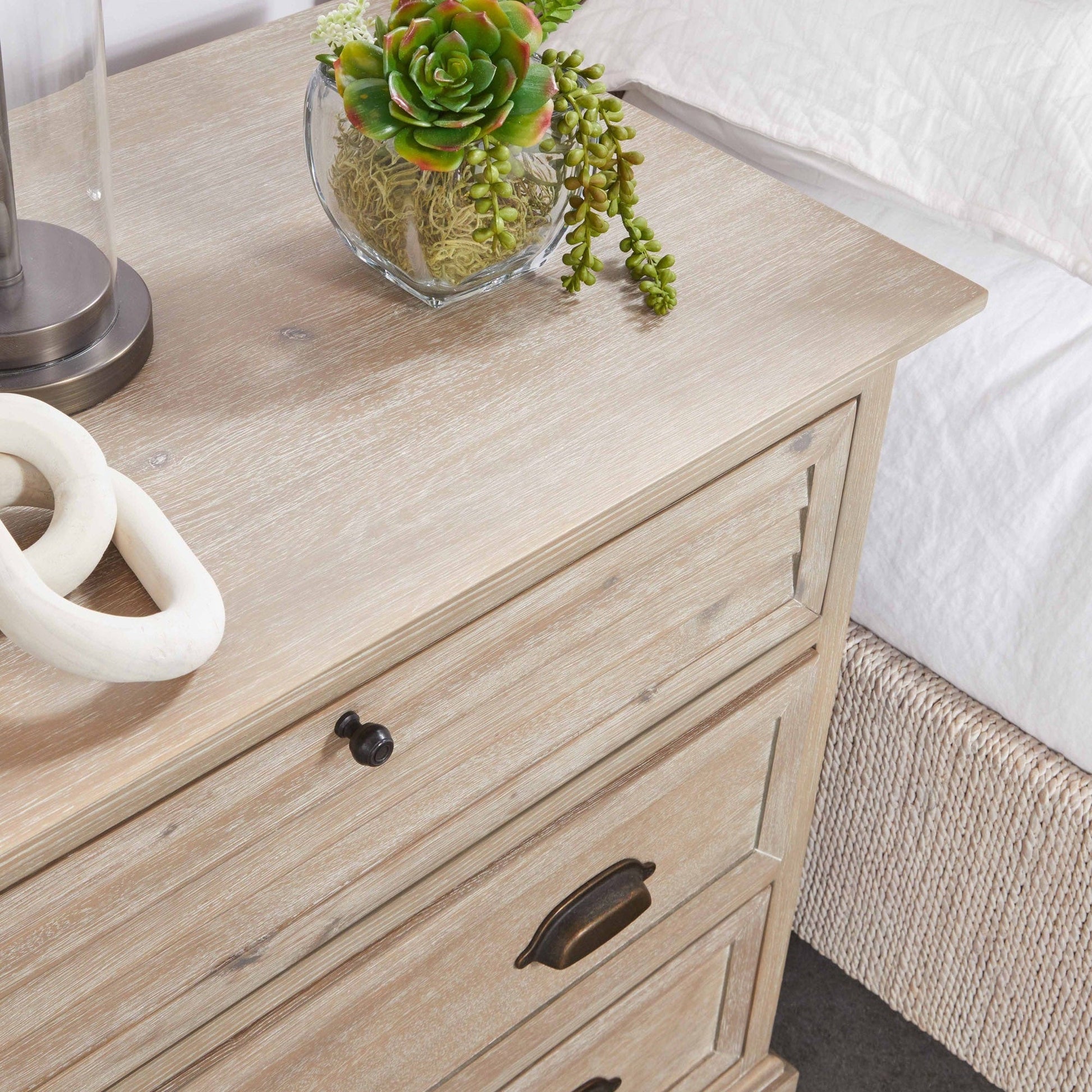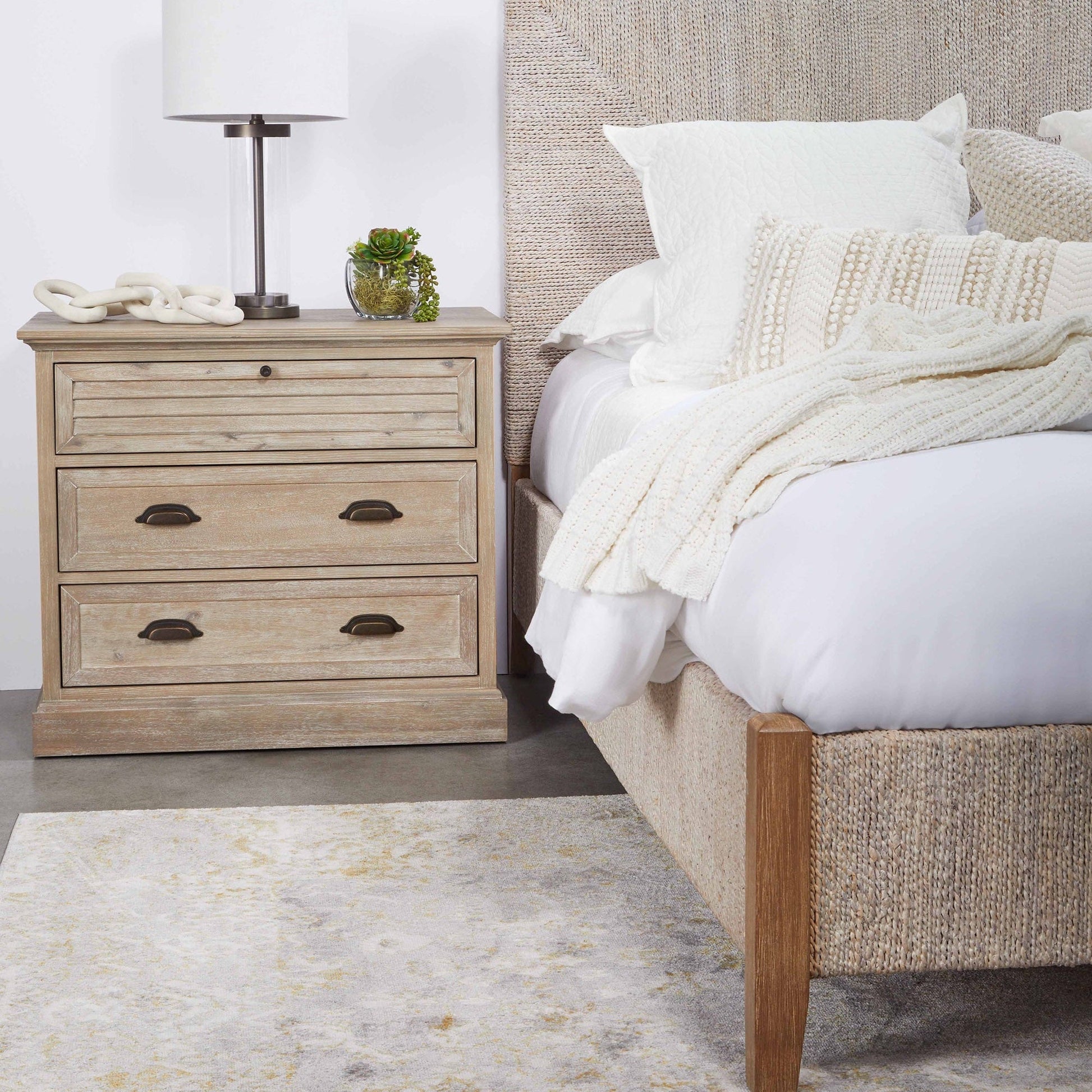 Apportez une élégance intemporelle et un rangement pratique à votre chambre avec la table de chevet classique à 3 tiroirs Eden d'Essentials For Living. Fabriquée en magnifique bois d'acacia aux nuances de gris naturel et à la finition subtilement vieillie, cette table de chevet s'intègre parfaitement aux styles campagnard, transitionnel et traditionnel. Mesurant 84 cm de large, 48 cm de profondeur et 74 cm de haut, elle offre un vaste espace de rangement grâce à ses trois tiroirs spacieux. Le tiroir supérieur est doublé de feutre pour protéger les objets délicats, tandis que les deux tiroirs supplémentaires sont dotés de doubles poignées pour un accès facile. Le design à lattes sur la façade du tiroir supérieur ajoute profondeur et caractère à ce meuble polyvalent.
