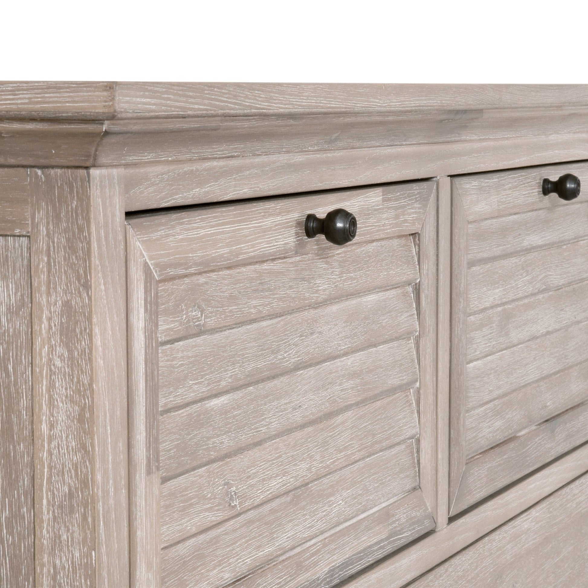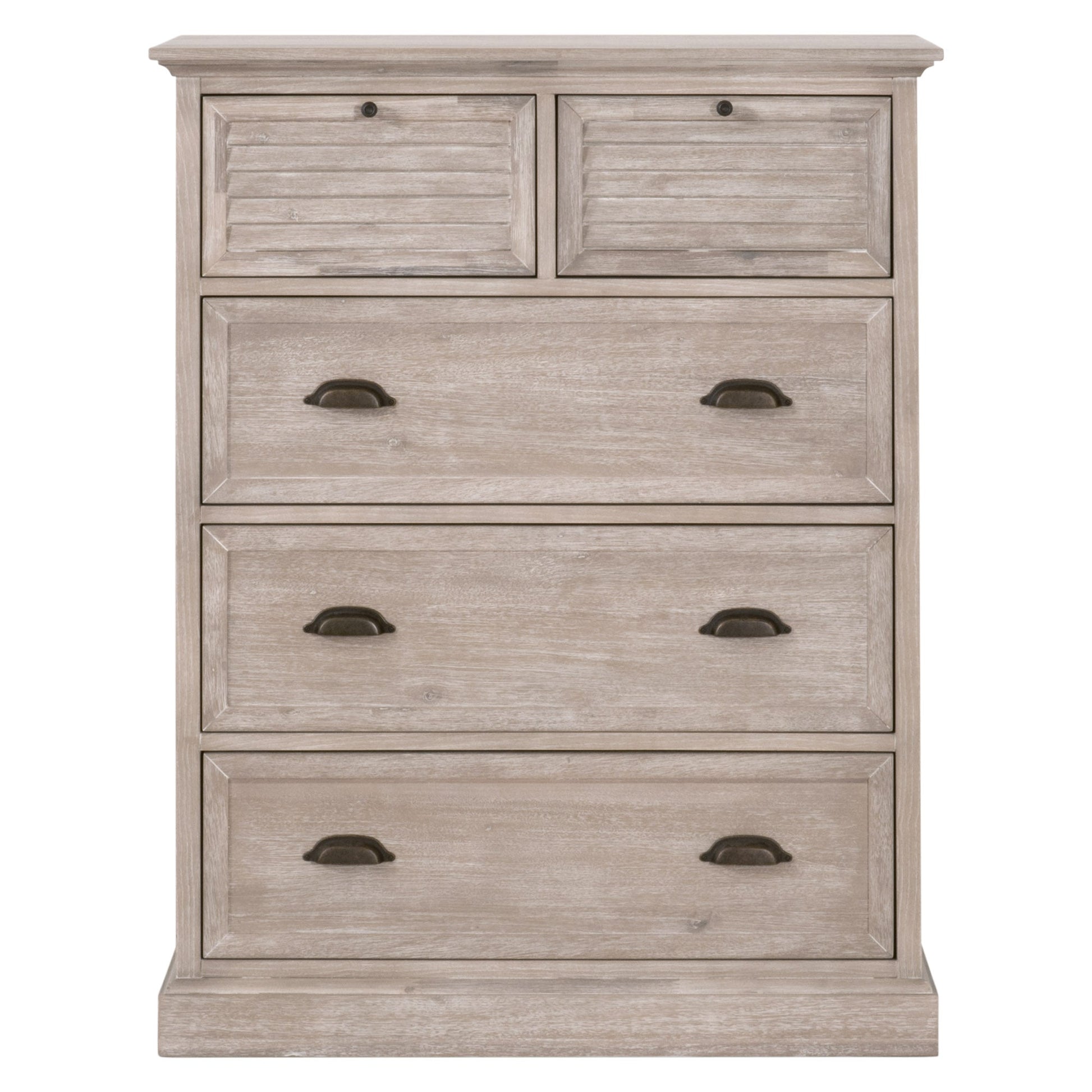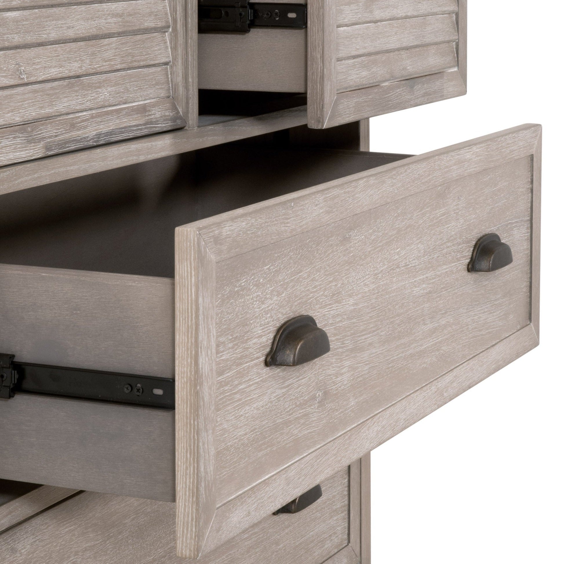 Sublimez votre chambre avec l'élégance intemporelle et le généreux espace de rangement de la commode haute 5 tiroirs Eden d'Essentials For Living. Fabriquée en magnifique bois d'acacia aux nuances de gris naturel et à la finition subtilement vieillie, cette commode haute s'intègre parfaitement aux styles campagnard, transitionnel et traditionnel. Mesurant 96 cm de large, 50 cm de profondeur et 123 cm de haut, elle offre un vaste espace de rangement avec ses cinq tiroirs spacieux. Les deux tiroirs supérieurs sont doublés de feutre, parfaits pour ranger les objets délicats, tandis que les trois autres sont dotés de doubles poignées pour une utilisation facile. Les tiroirs supérieurs sont ornés d'un motif à lattes qui ajoute texture et profondeur à la façade.