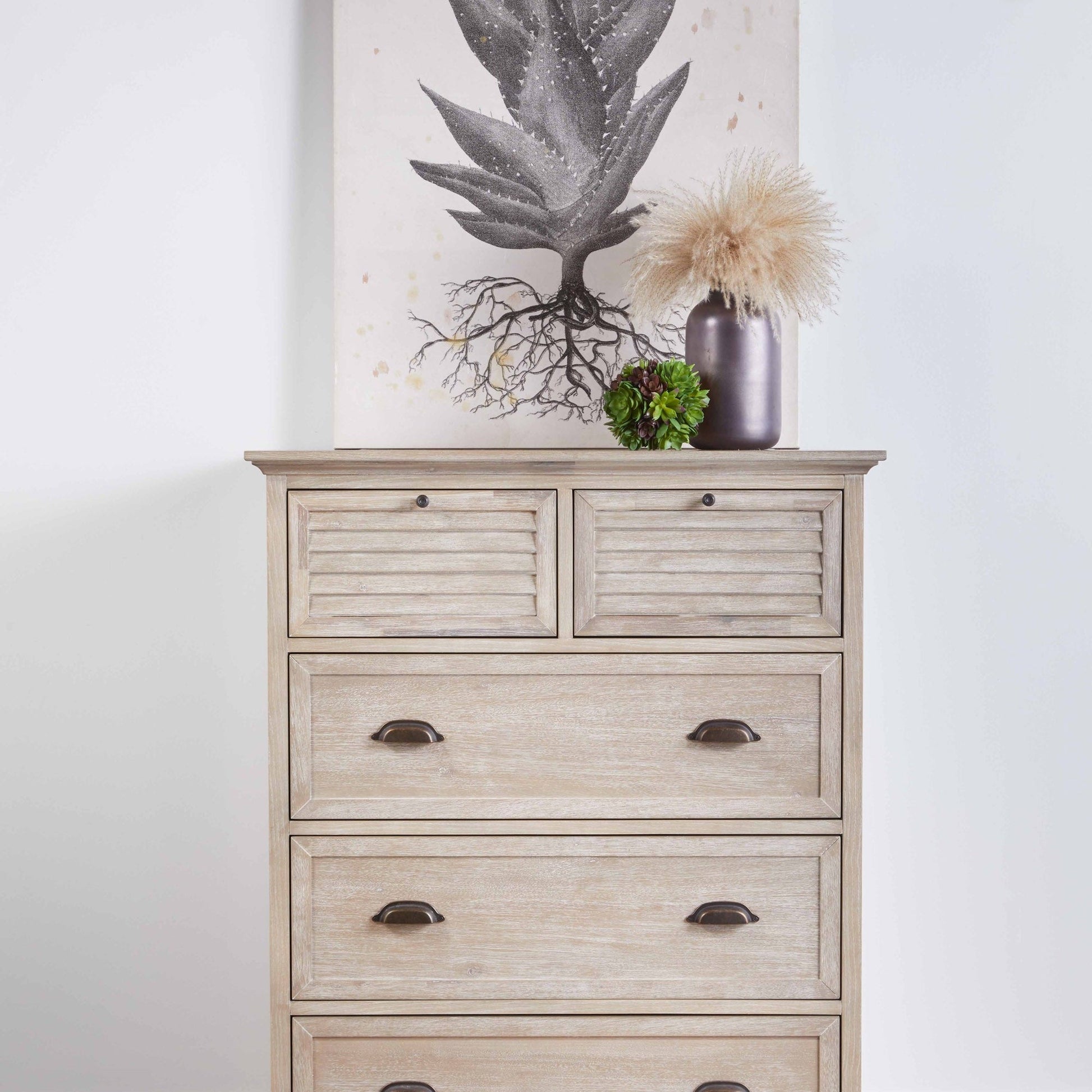 Essentials For Living – Commode haute 5 tiroirs Eden – Bois d'acacia avec tiroirs supérieurs doublés de feutre