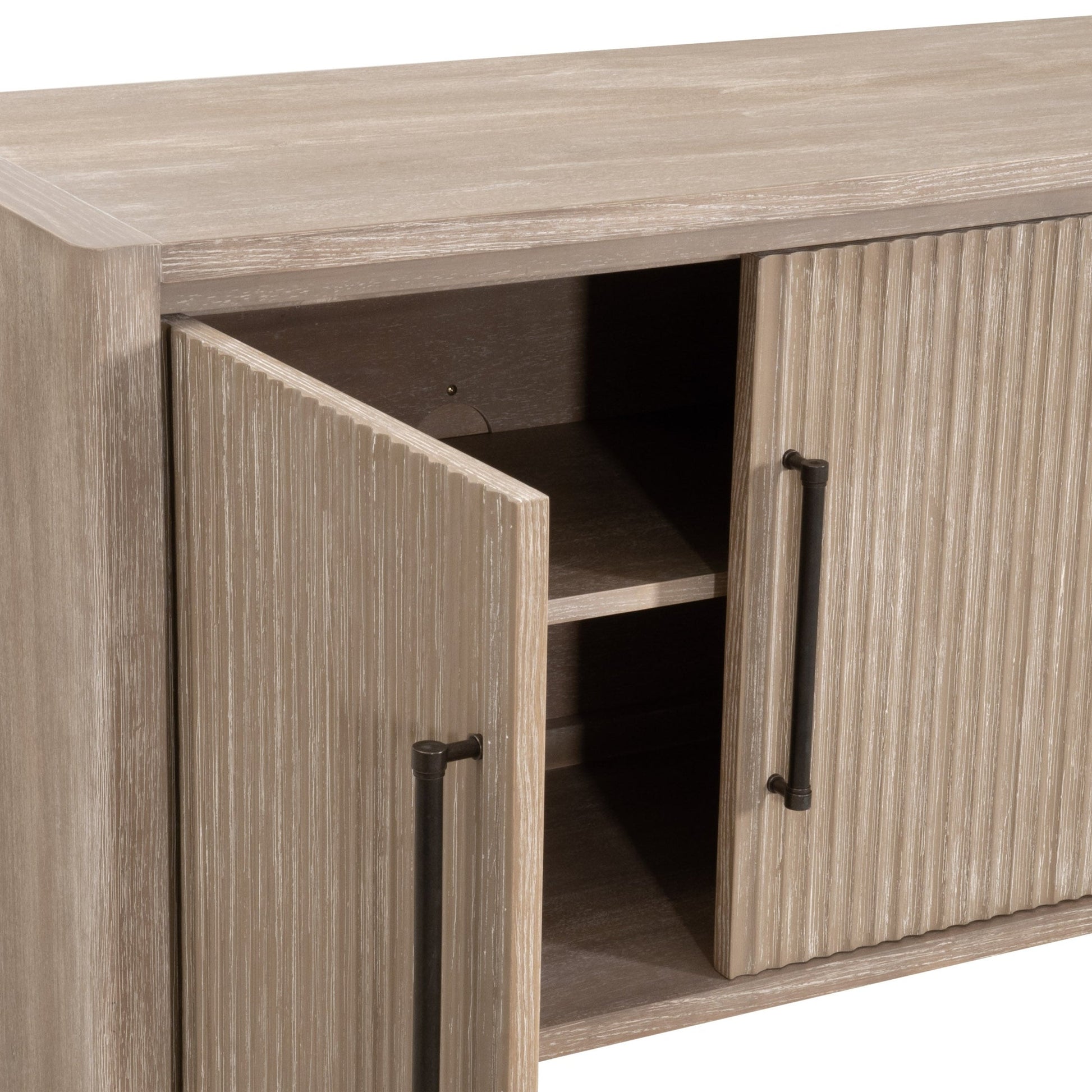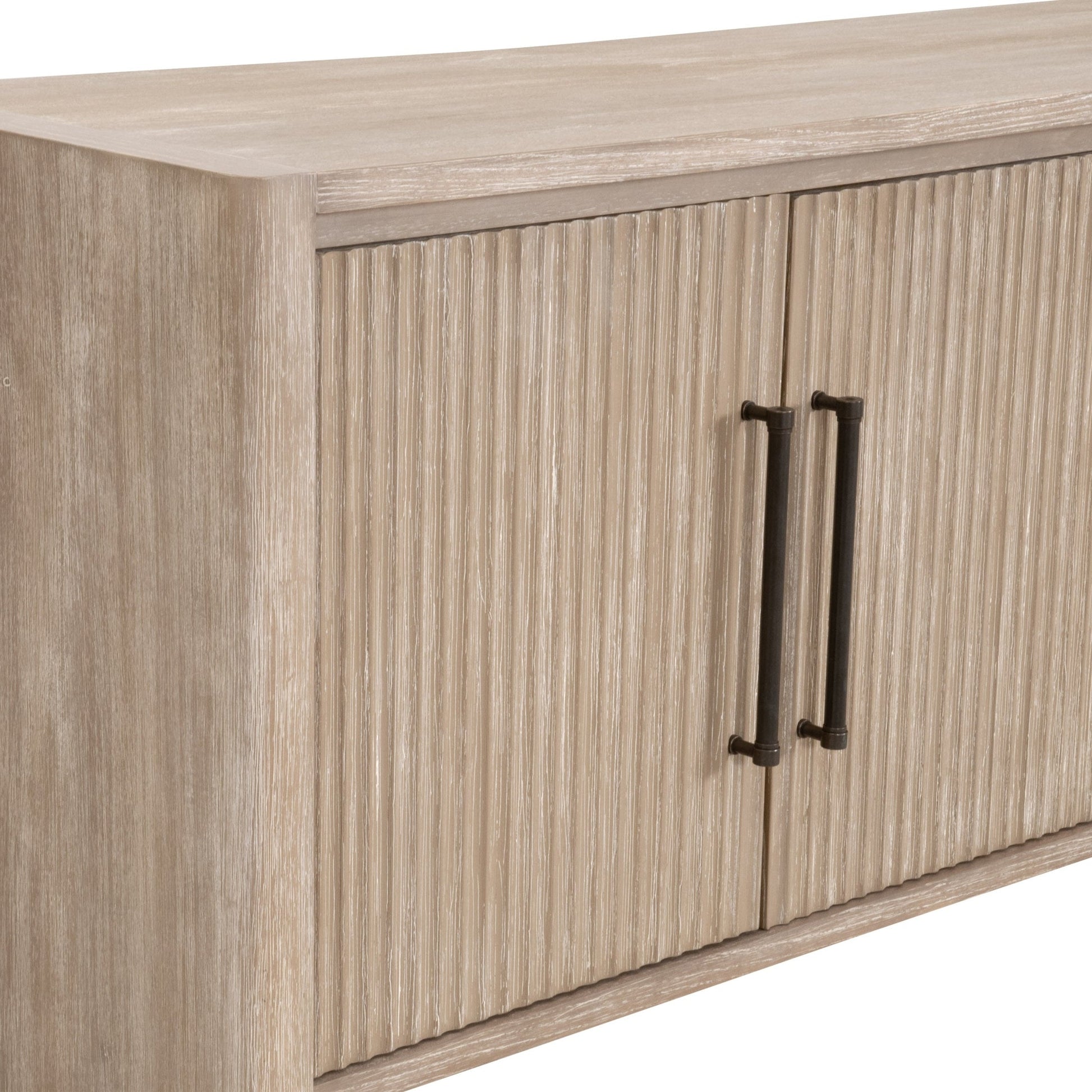 Parfait pour les intérieurs de transition, ce buffet multimédia équilibre la texture, l'artisanat et le rangement - une pièce maîtresse idéale pour toute maison organisée.