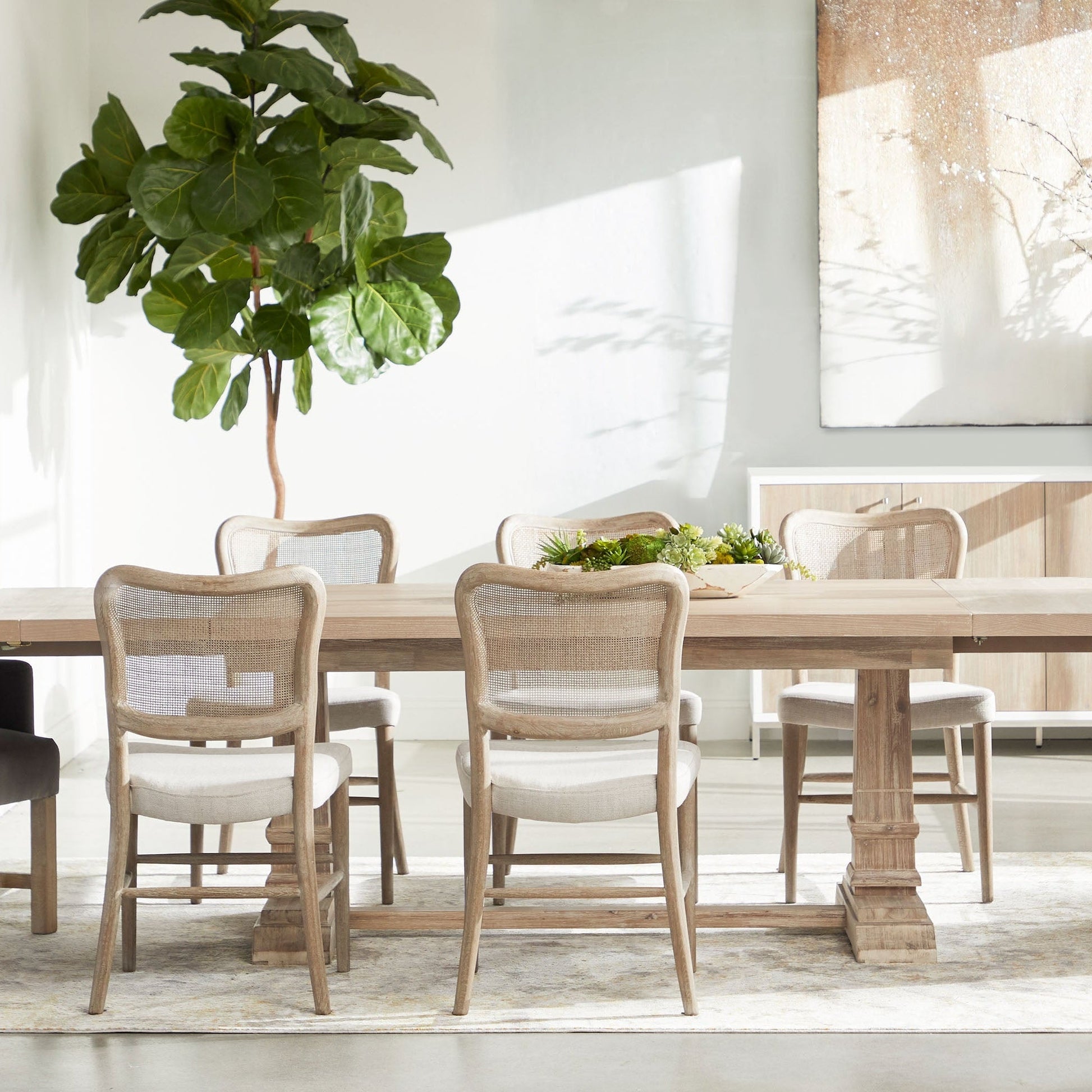 Ajoutez une touche de chaleur intemporelle et de flexibilité à votre salle à manger avec la table à rallonge Hudson d' Essentials For Living . Fabriquée avec soin en bois d'acacia massif et placage au fini gris naturel, cette table met en valeur le grain authentique du bois, les nœuds et le charme rustique de sa texture brossée .
