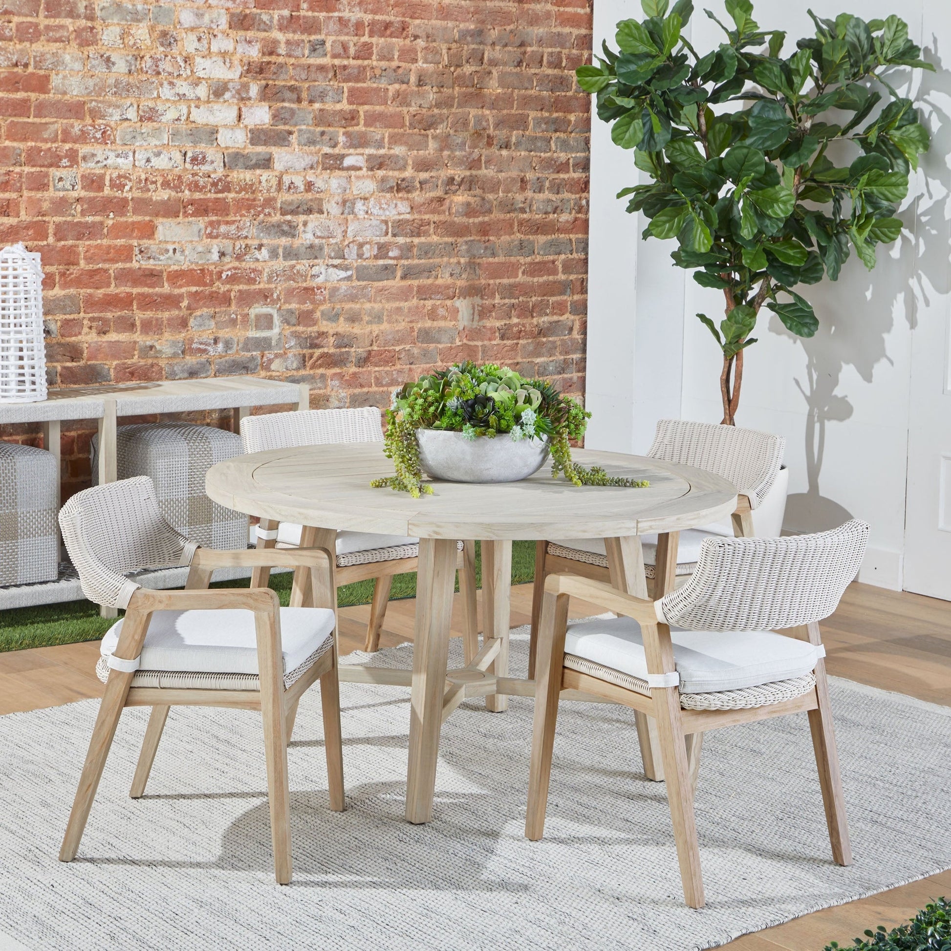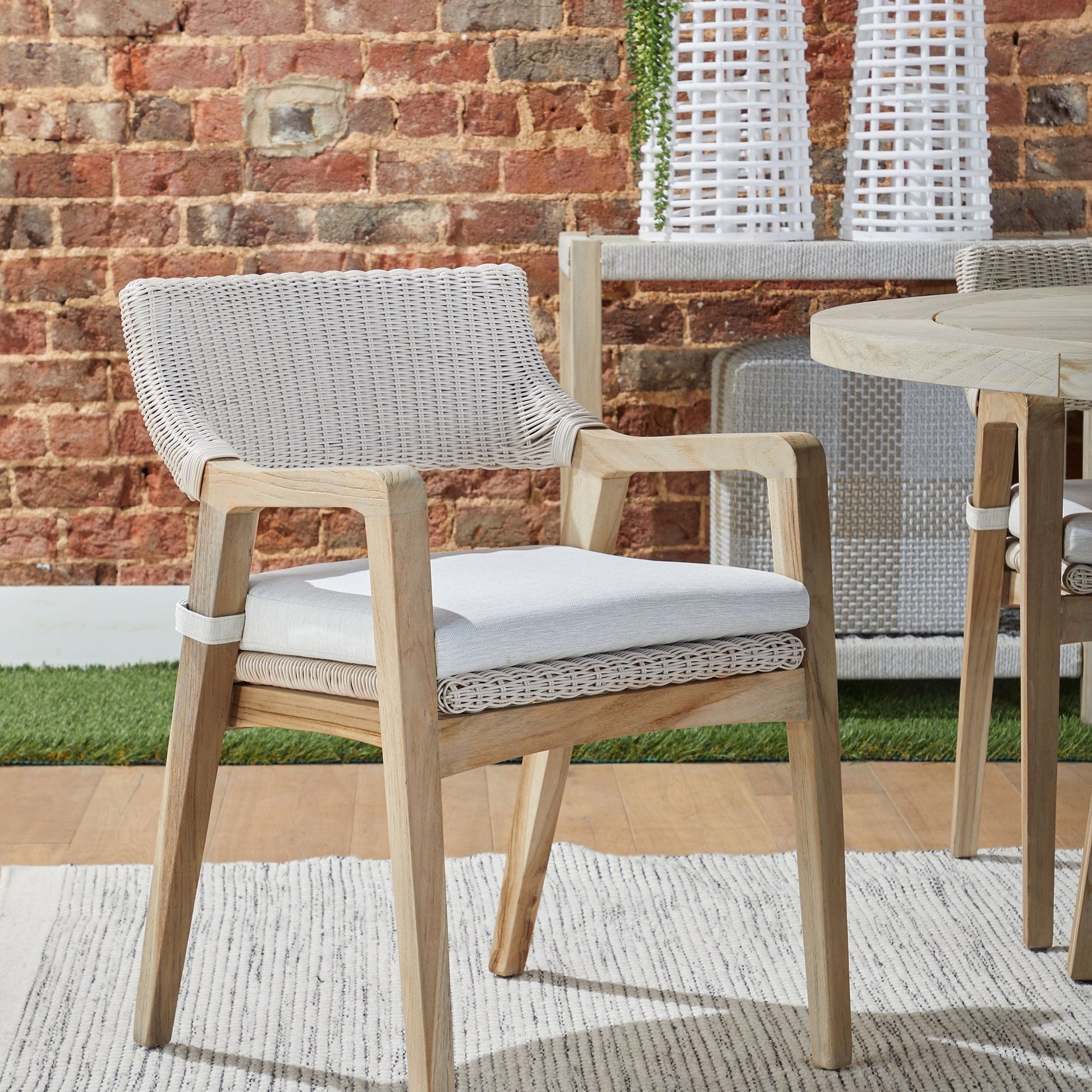 Qu'elle soit placée autour d'une table à manger de patio ou utilisée comme siège autonome, la chaise Lucia offre un mélange de charme côtier moderne et de savoir-faire durable.