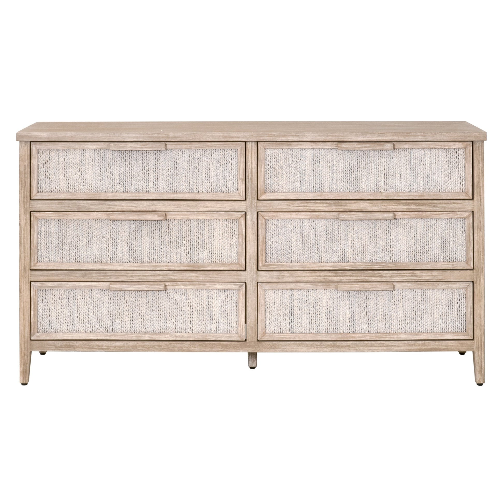 Sublimez votre chambre avec l'élégance naturelle de la commode double 6 tiroirs Malay d'Essentials For Living. Conçue dans un esprit transitionnel et une touche côtière, cette commode allie savoir-faire artisanal et praticité au quotidien.
