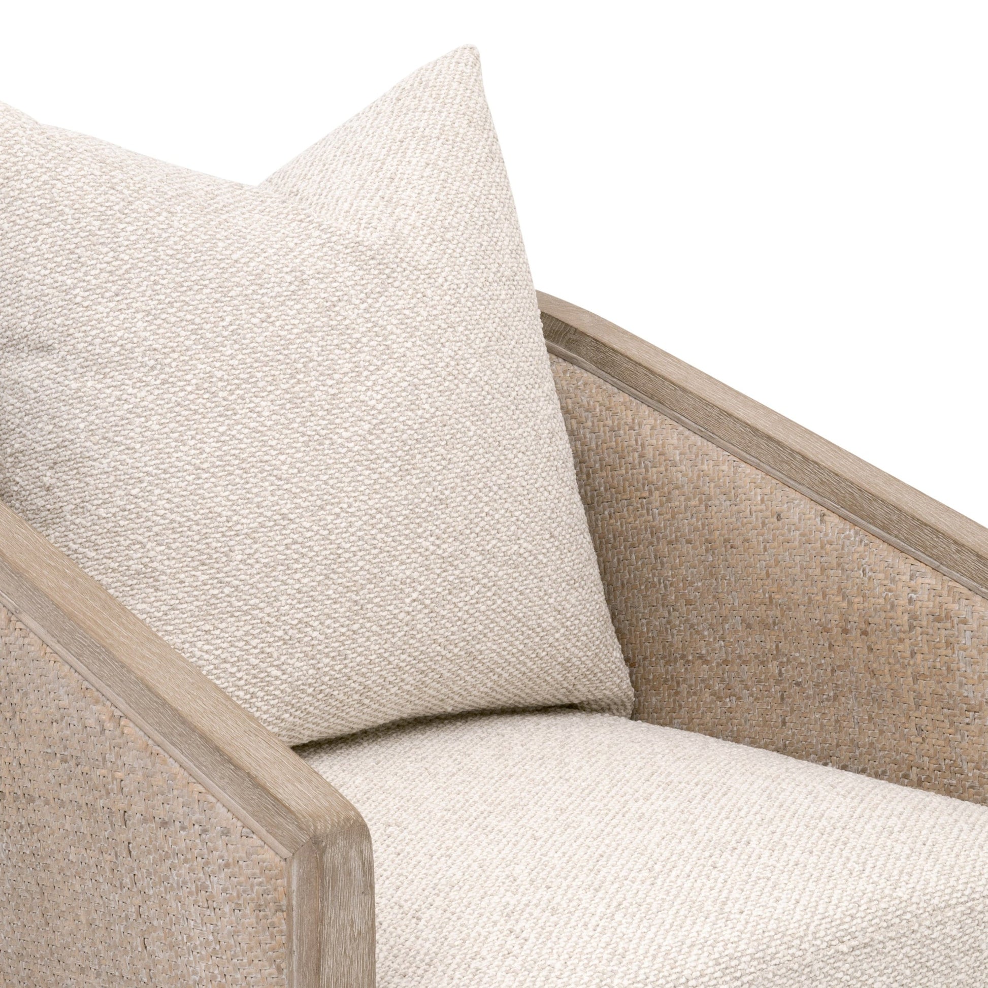 Plongez dans un confort raffiné avec le fauteuil McGuire d'Essentials For Living. Ce meuble transitionnel allie texture organique et revêtement haute performance, idéal pour les salons contemporains, les petits coins détente ou les coins lecture. Sa structure en chêne massif est recouverte de rotin gris naturel tressé à la main, lui conférant une touche artisanale et naturelle, tandis que le tissu LiveSmart Gellar-Linen résiste aux taches et se nettoie facilement. Un coussin d'assise amovible et réversible, garni d'un luxueux mélange 50/50 polyester-duvet, ainsi qu'un coussin assorti inclus, garantissent un confort durable. Le piètement en X renforce la durabilité et ajoute une touche esthétique, rendant ce fauteuil aussi robuste qu'élégant.