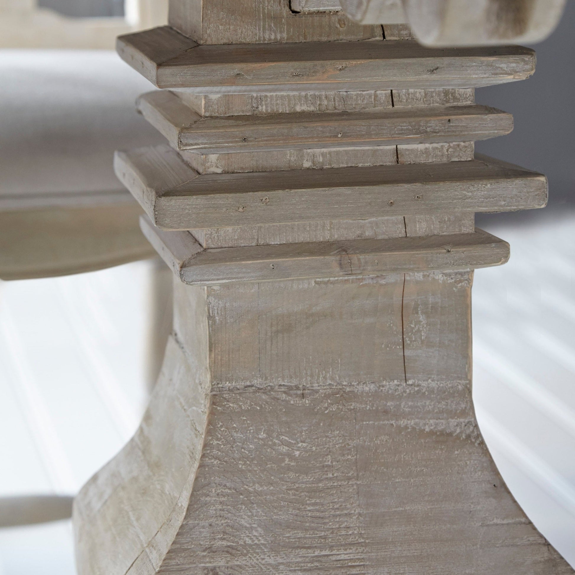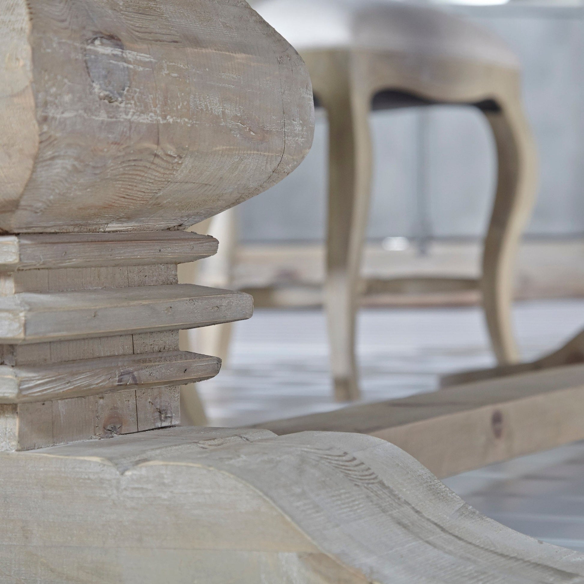 Un piètement à tréteaux intemporel confère à la table charme architectural et stabilité, tandis que le plateau en placage vieilli à la main complète son style avec une finition chaleureuse et patinée. Conçue pour les rassemblements, la table est équipée de deux rallonges amovibles permettant d'allonger sa longueur de 25,5 m à 36,5 m, pour accueillir confortablement jusqu'à 12 convives.