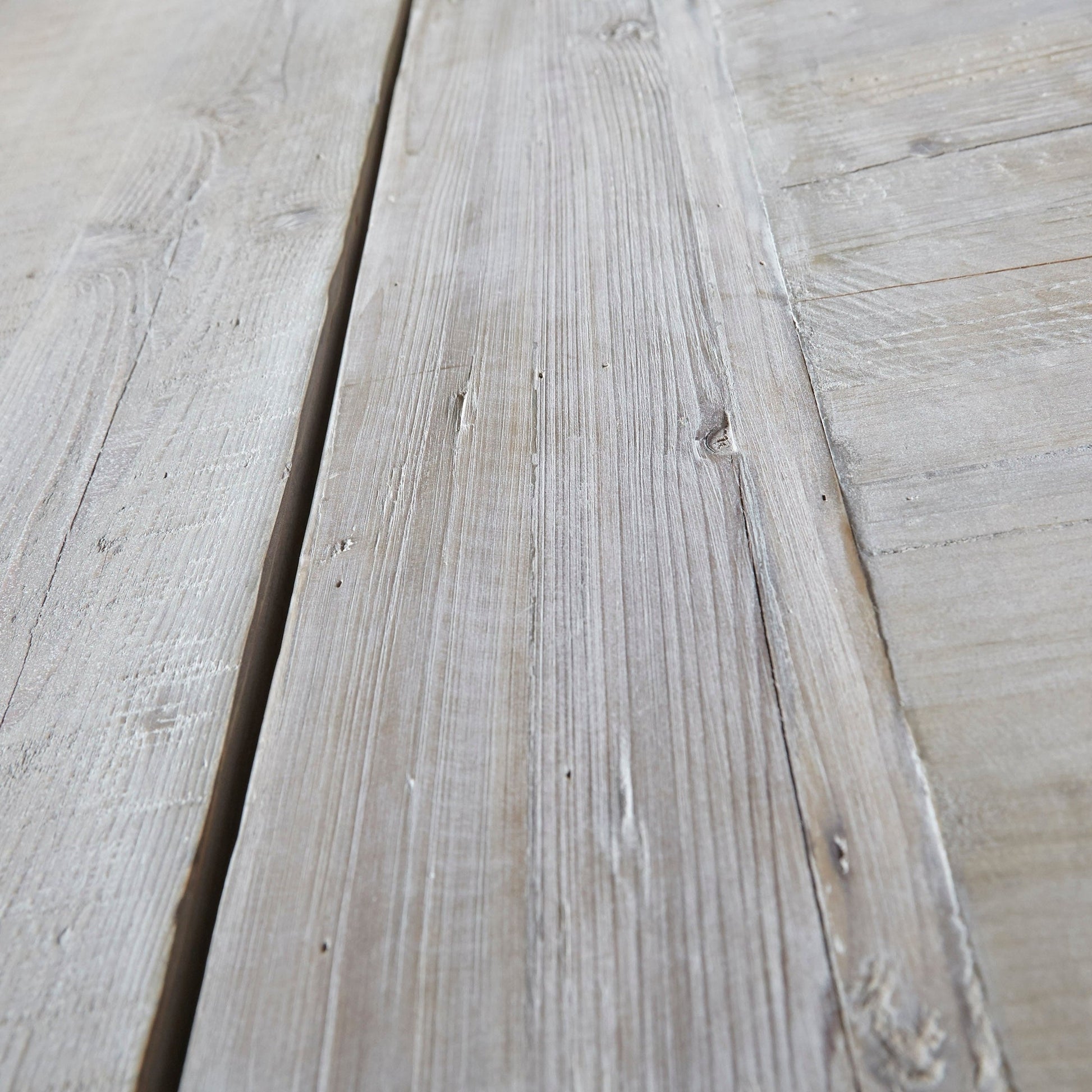 Remarque : En raison de la nature recyclée du bois, des variations naturelles, des fissures et de légers écarts entre les rallonges peuvent apparaître. Ces caractéristiques ne sont pas des défauts, mais contribuent au charme authentique et rustique de la table.