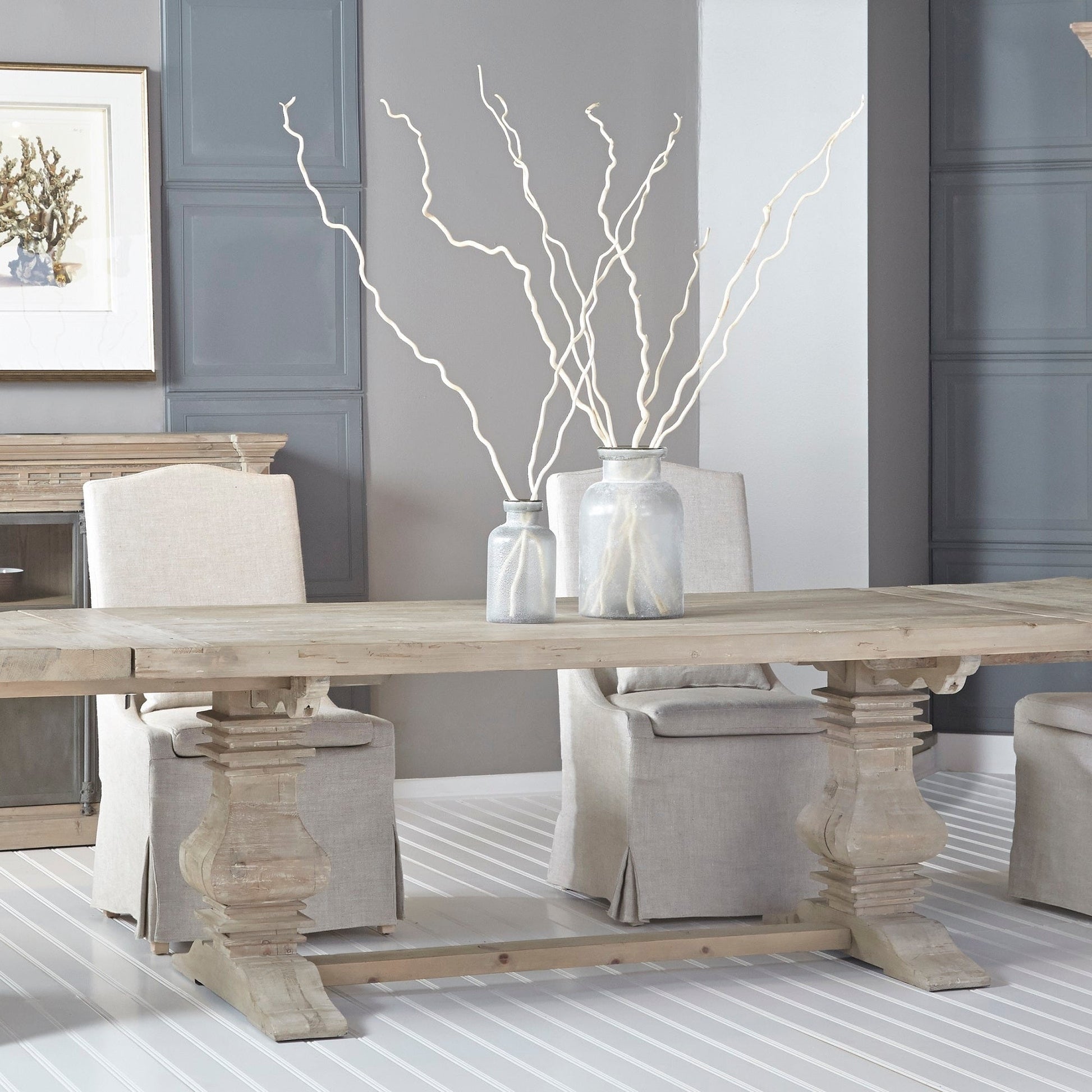 Apportez une élégance rustique et une polyvalence fonctionnelle à votre salle à manger avec la table à rallonge Monastery d'Essentials For Living. Fabriquée avec soin en pin et bouleau massifs recyclés , cette table à la finition gris fumé met en valeur la beauté naturelle du bois vieilli avec ses riches veinures, ses nœuds apparents et ses imperfections volontaires qui rendent chaque pièce unique.