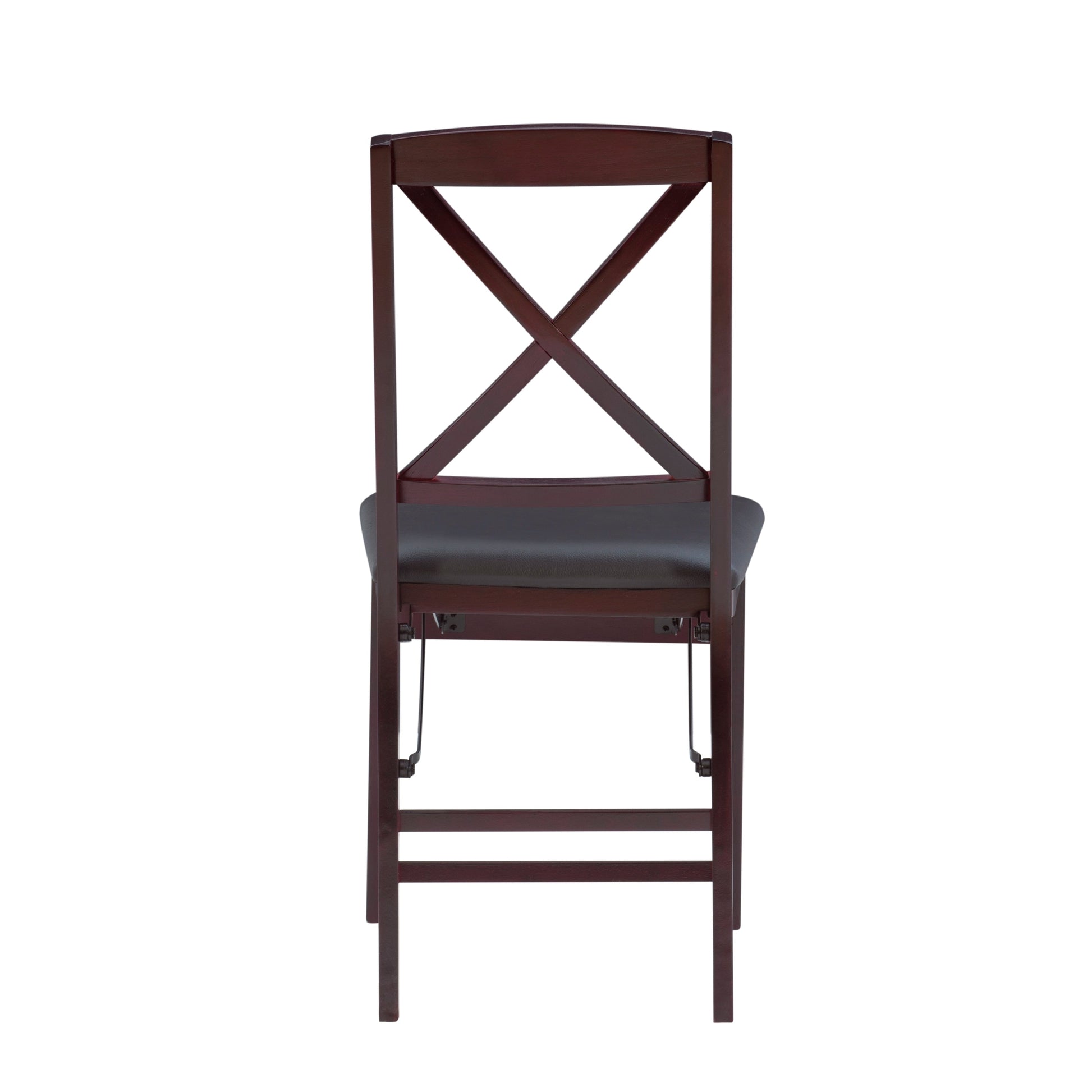 Des sièges élégants et la commodité d'une chaise pliante. Cette paire de chaises pliantes apporte une touche d'élégance supplémentaire à vos repas ou réceptions. Leur structure en bois est dotée d'un dossier classique en X et d'une assise rembourrée en similicuir, facile à nettoyer, avec une finition merlot riche. Les supports avant et arrière offrent une stabilité accrue. Pliables et peu encombrantes, ces chaises facilitent l'installation et le rangement. Aucun assemblage requis.