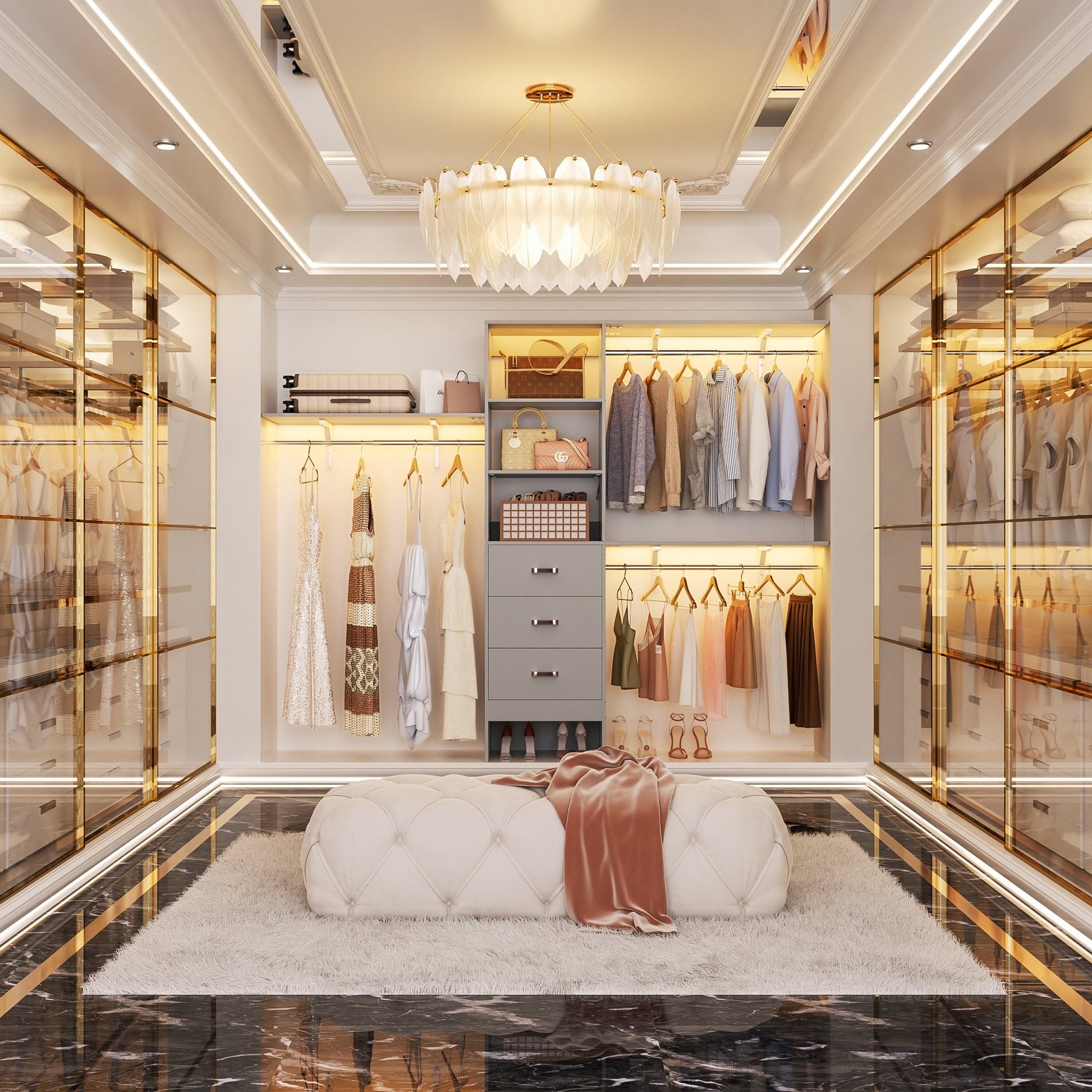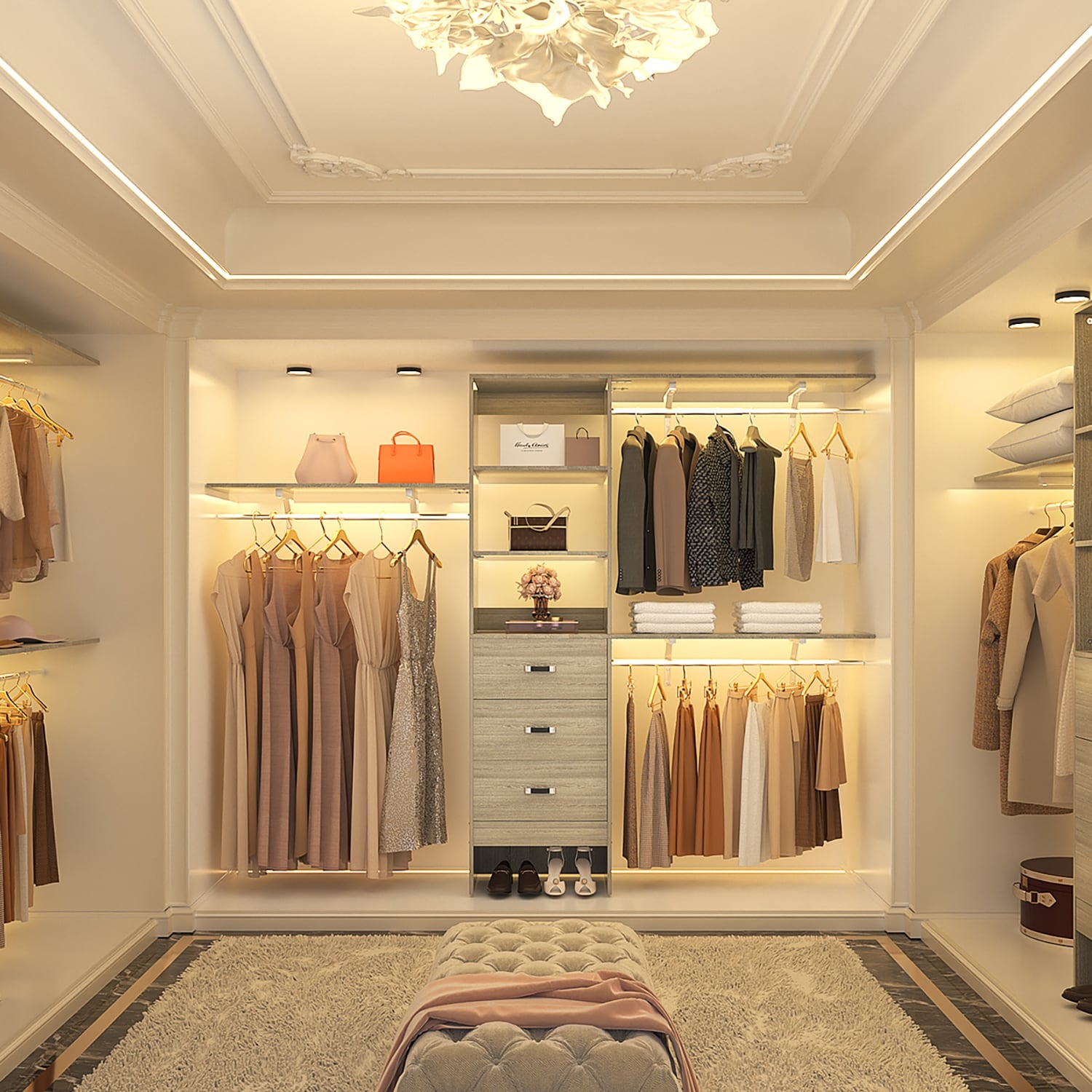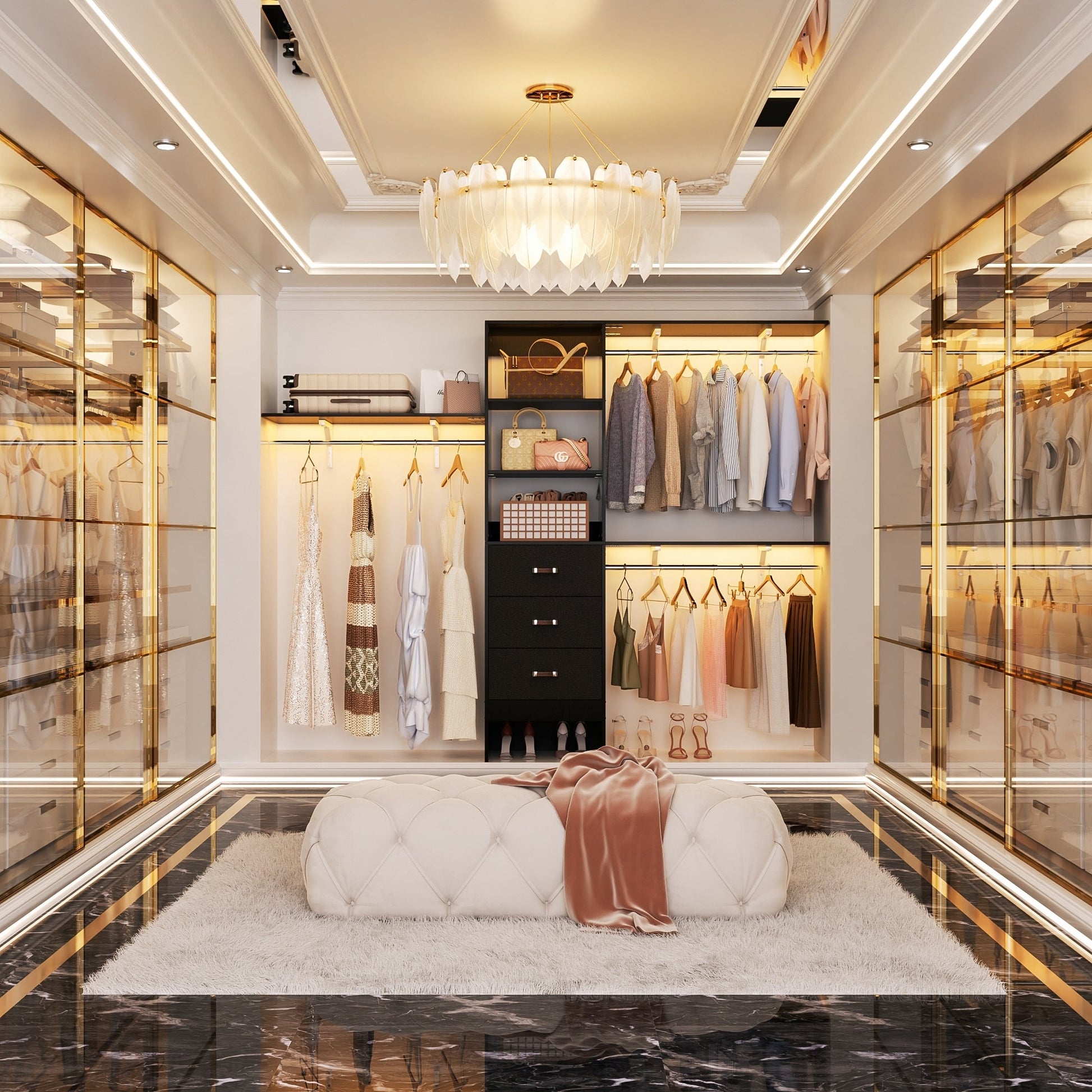 Rackcog Organiseur de placard réglable de 120 pouces avec tiroirs, système de placard avec étagères de bricolage pour placards et dressings