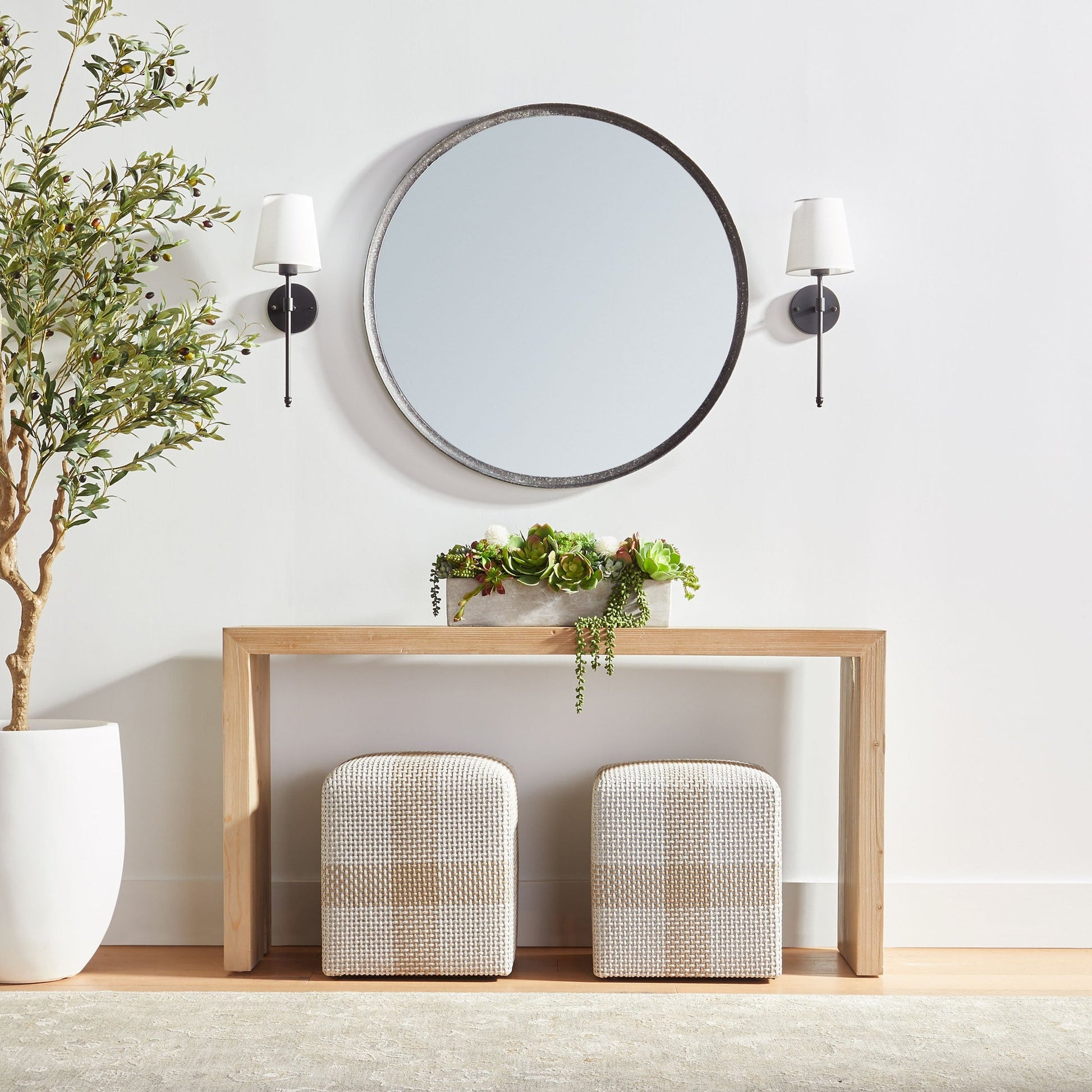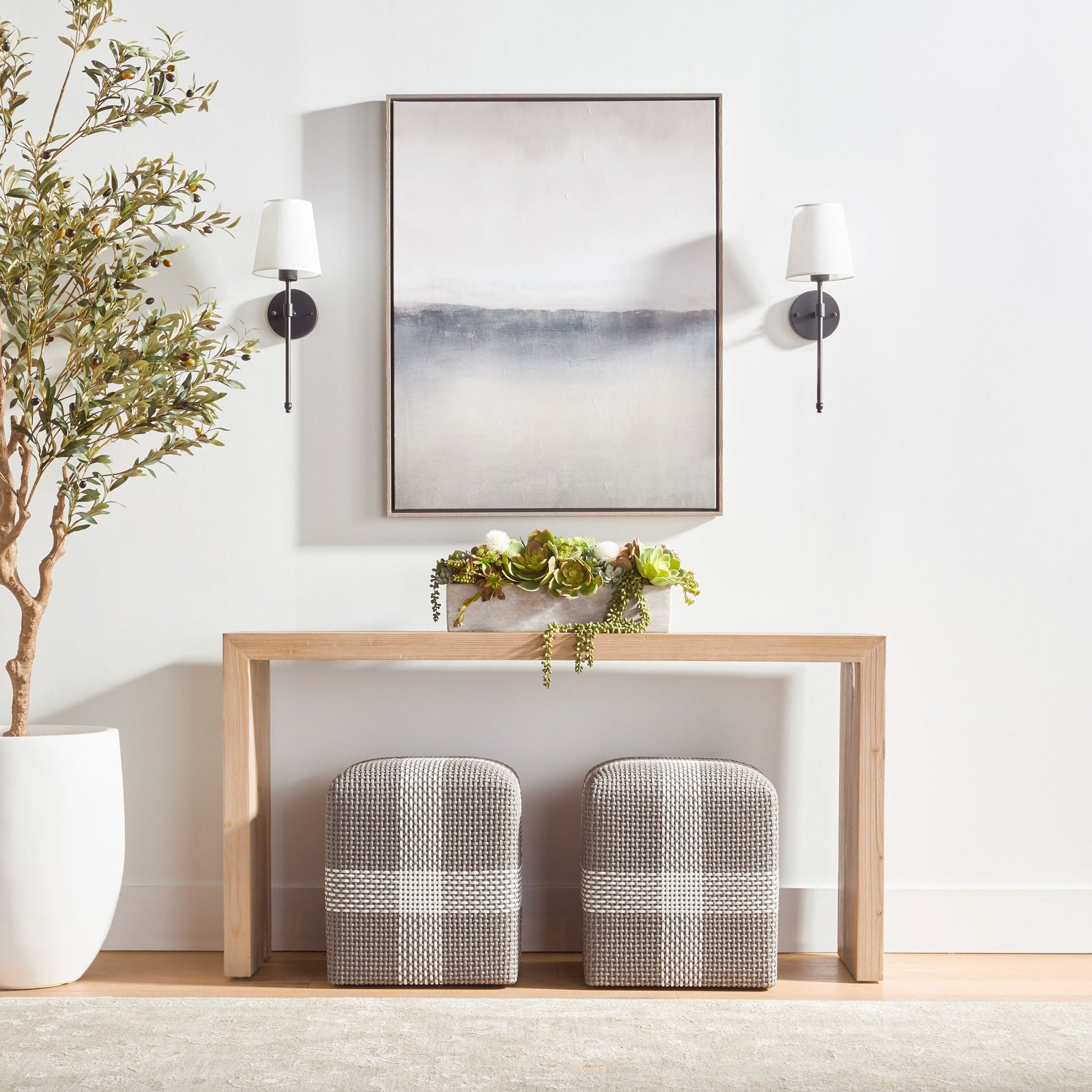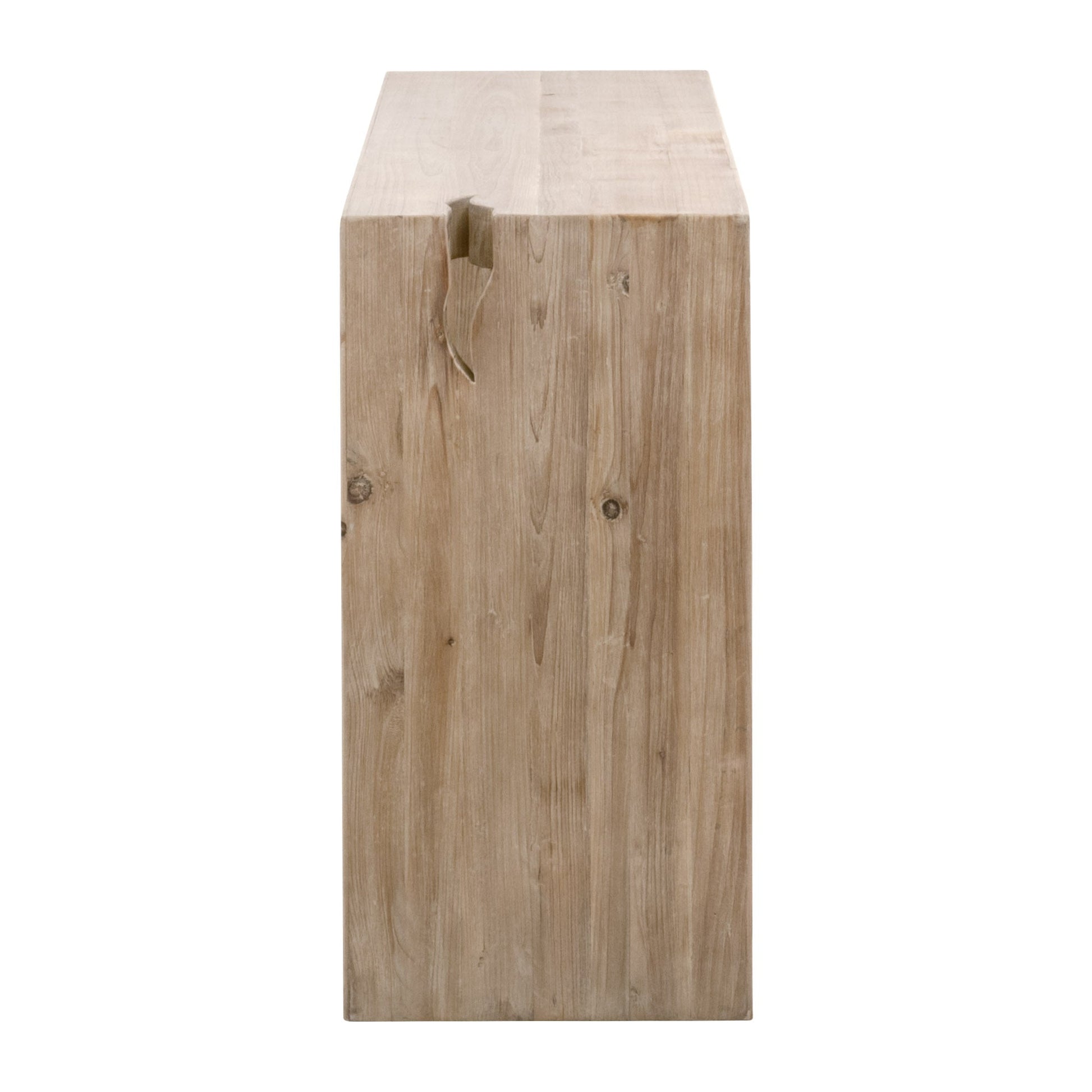 La finition gris fumé met en valeur le veinage riche et les nuances organiques du bois récupéré, tandis que deux faux trous décoratifs confèrent un charme artisanal sans compromettre la silhouette rectangulaire épurée. Idéale pour exposer des livres, des vases ou des photos encadrées, la console Reed s'intègre à une variété de styles de décoration, du transitionnel et rustique au bord de mer et moderne .