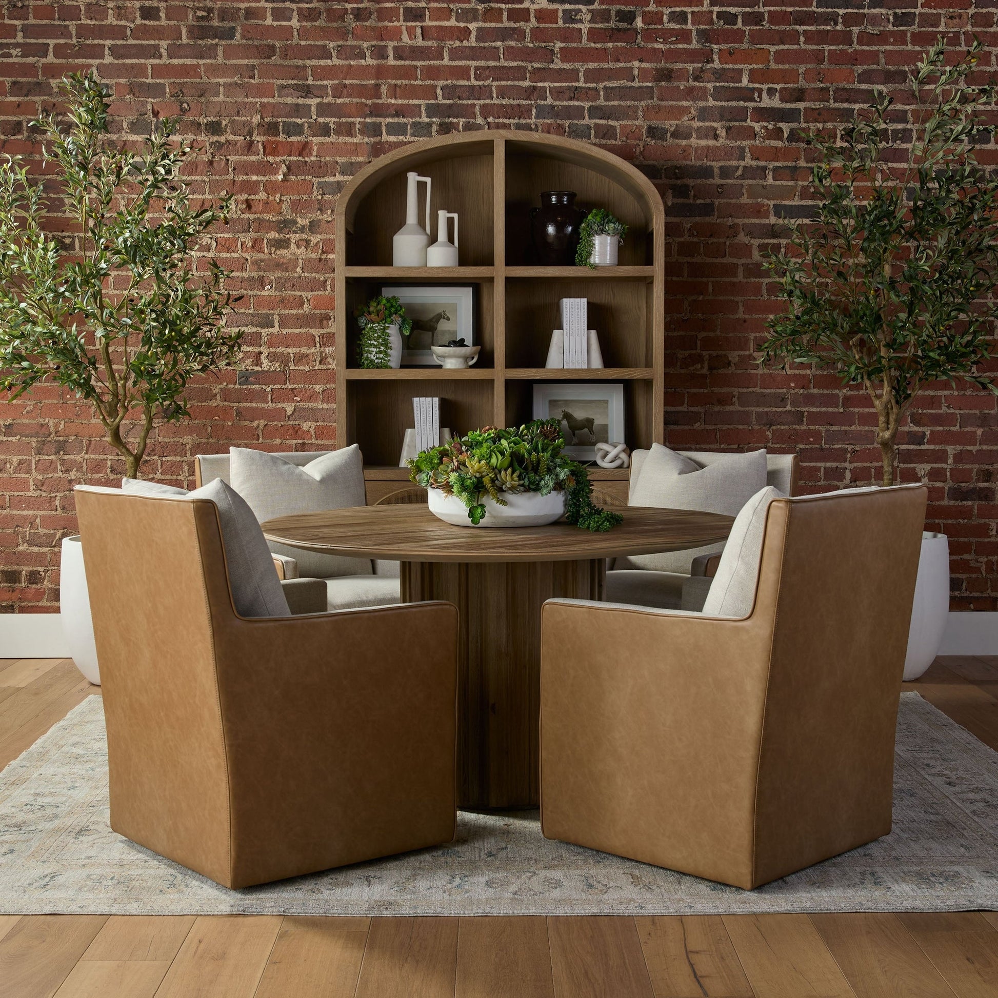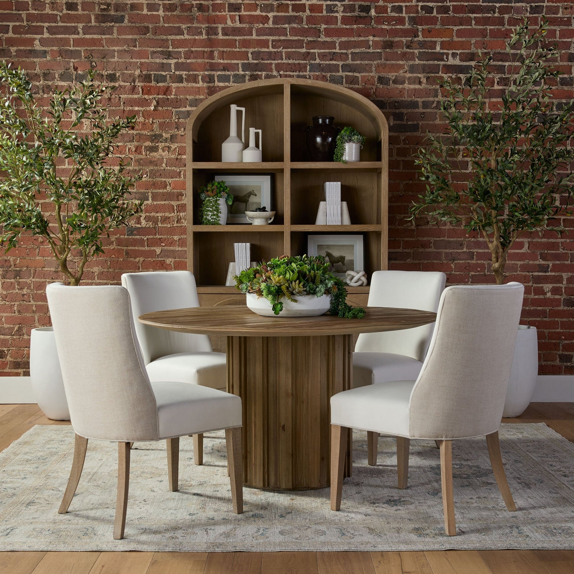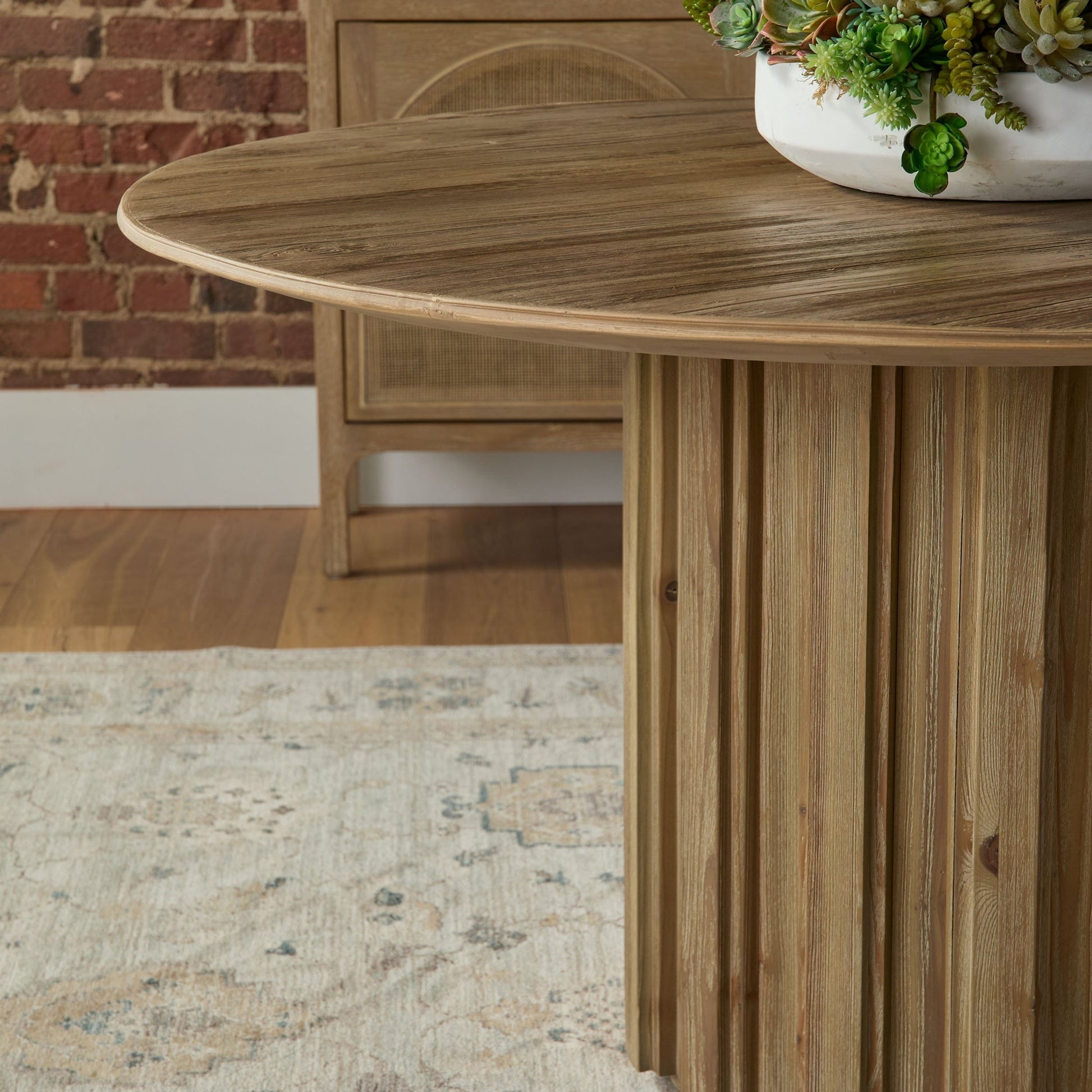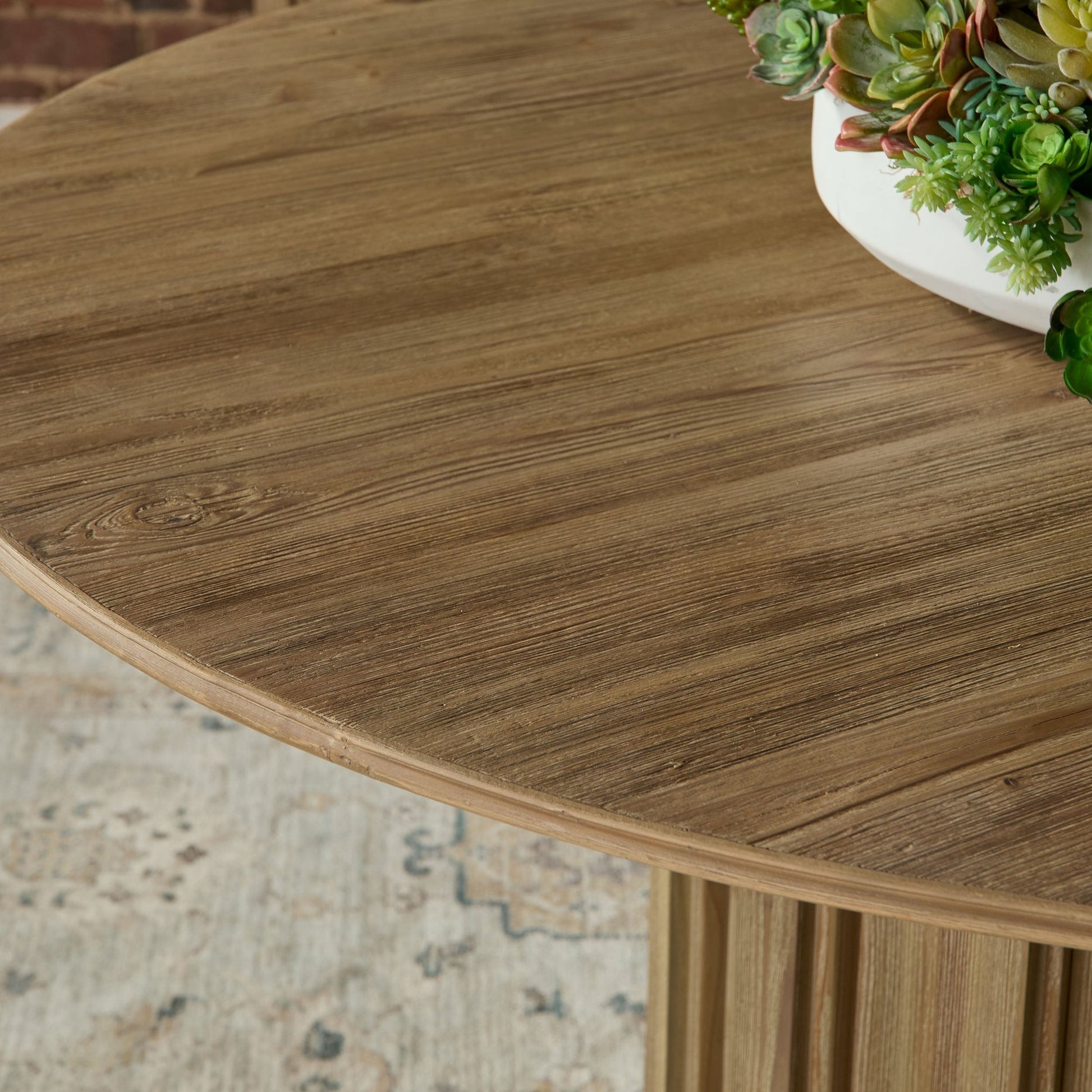 Le piédestal cannelé décoratif et le socle massif confèrent à la table un caractère sculptural, tandis que les bords inclinés lui confèrent une touche raffinée. Son design transitionnel s'intègre harmonieusement aux intérieurs rustiques , côtiers ou traditionnels , accueillant confortablement jusqu'à quatre convives pour des dîners conviviaux et des réunions enrichissantes.