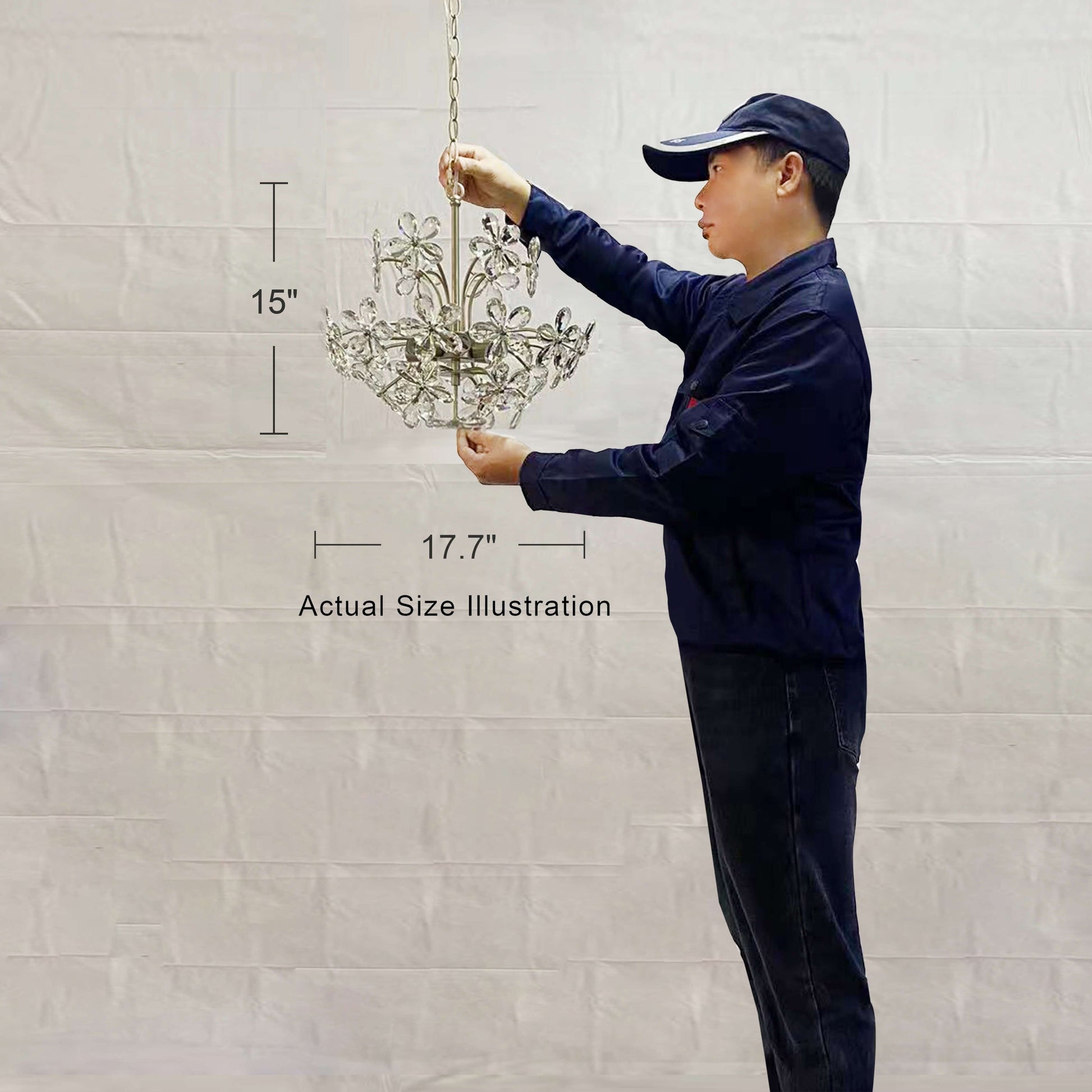 Lustre Rosa à 6 lumières en cristal argenté brossé avec motif de fleurs champagne