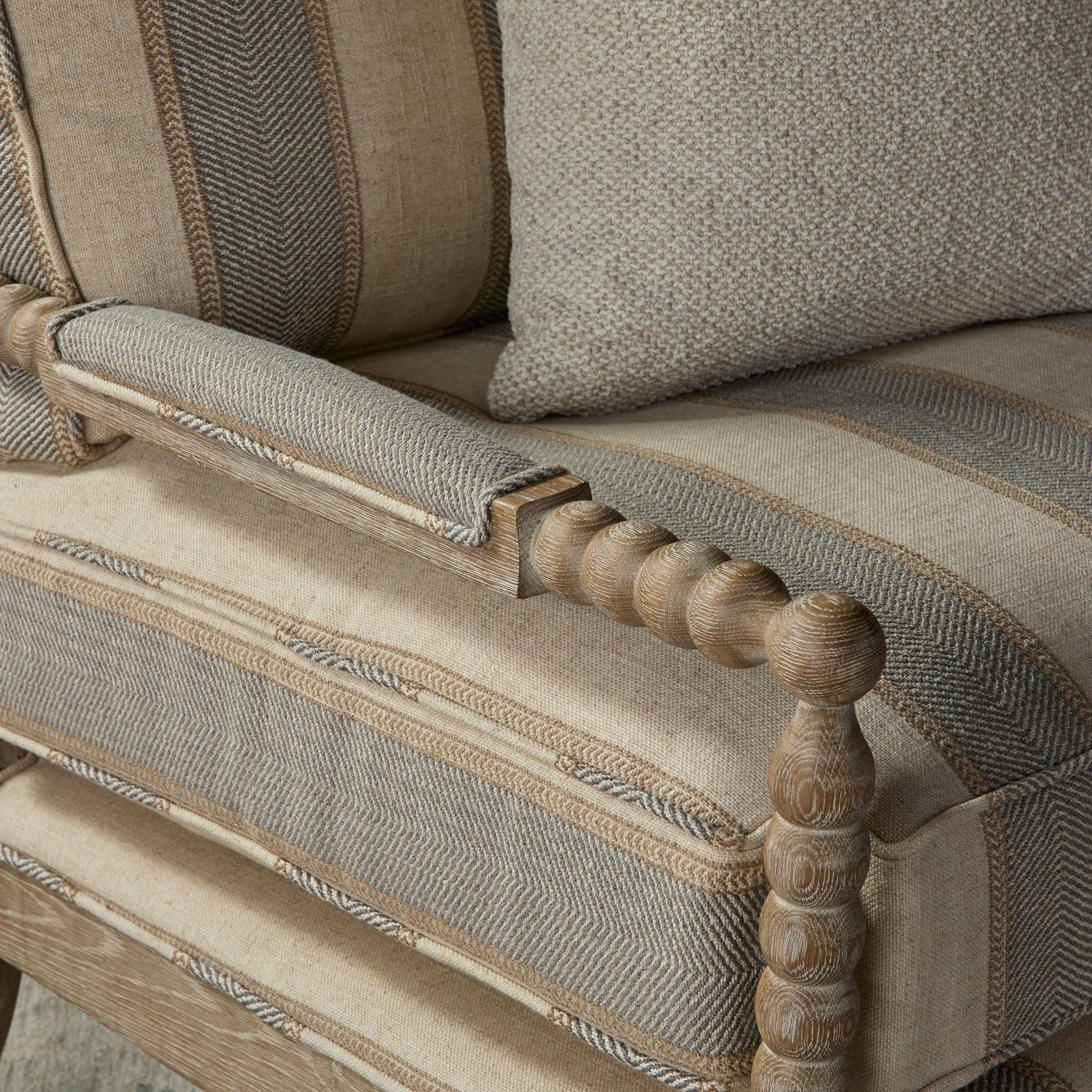Alliant avec élégance charme traditionnel et sophistication transitionnelle, le fauteuil Club Rouleau d'Essentials For Living est une pièce d'appoint intemporelle conçue pour sublimer tout espace de vie. Fabriqué en chêne gris naturel massif, sa structure en bois apparent présente de magnifiques détails en forme de bobine sculptés le long des accoudoirs et du dossier, apportant une touche artisanale au design. Revêtu d'un tissu performant LiveSmart blanc, ce fauteuil offre une durabilité et un entretien faciles, sans sacrifier la douceur ni le style.