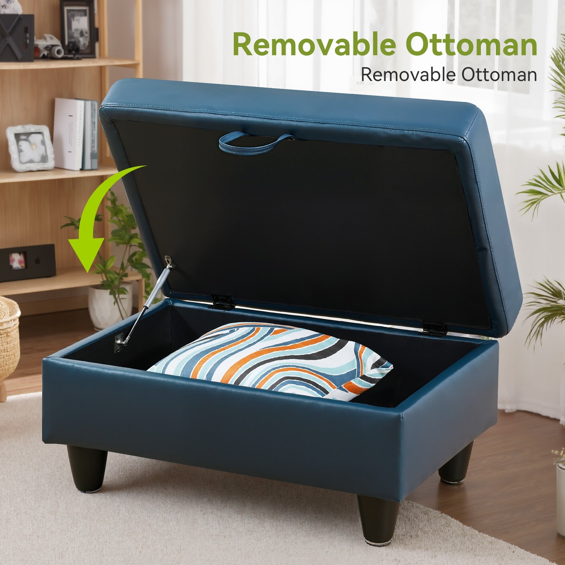 C. Le pouf avec fonction de rangement, peut stocker des petits objets d'usage quotidien, ce qui est flexible et pratique