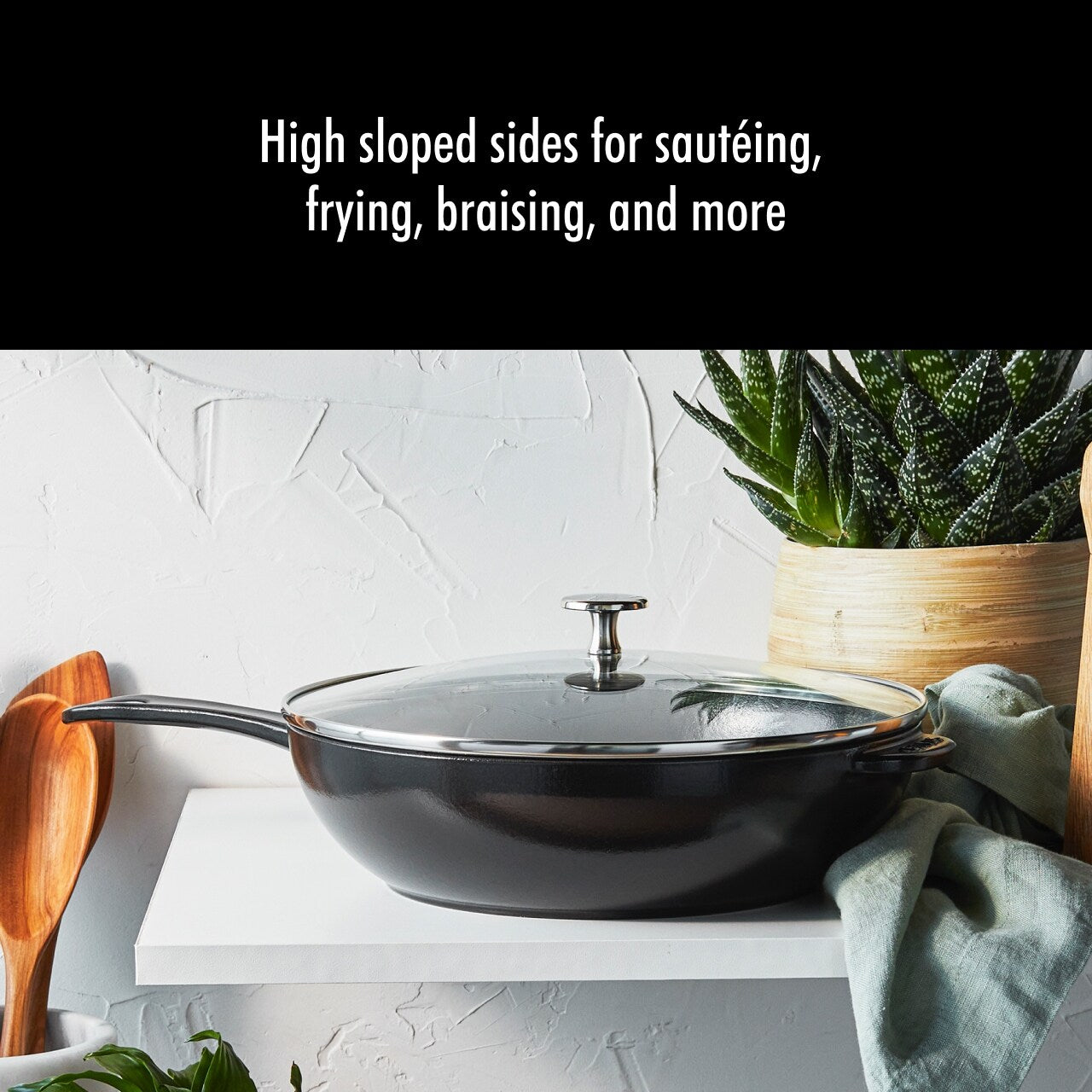 - Poêle en fonte de 2,9 litres avec des côtés très inclinés, idéale pour faire sauter, frire, braiser et plus encore