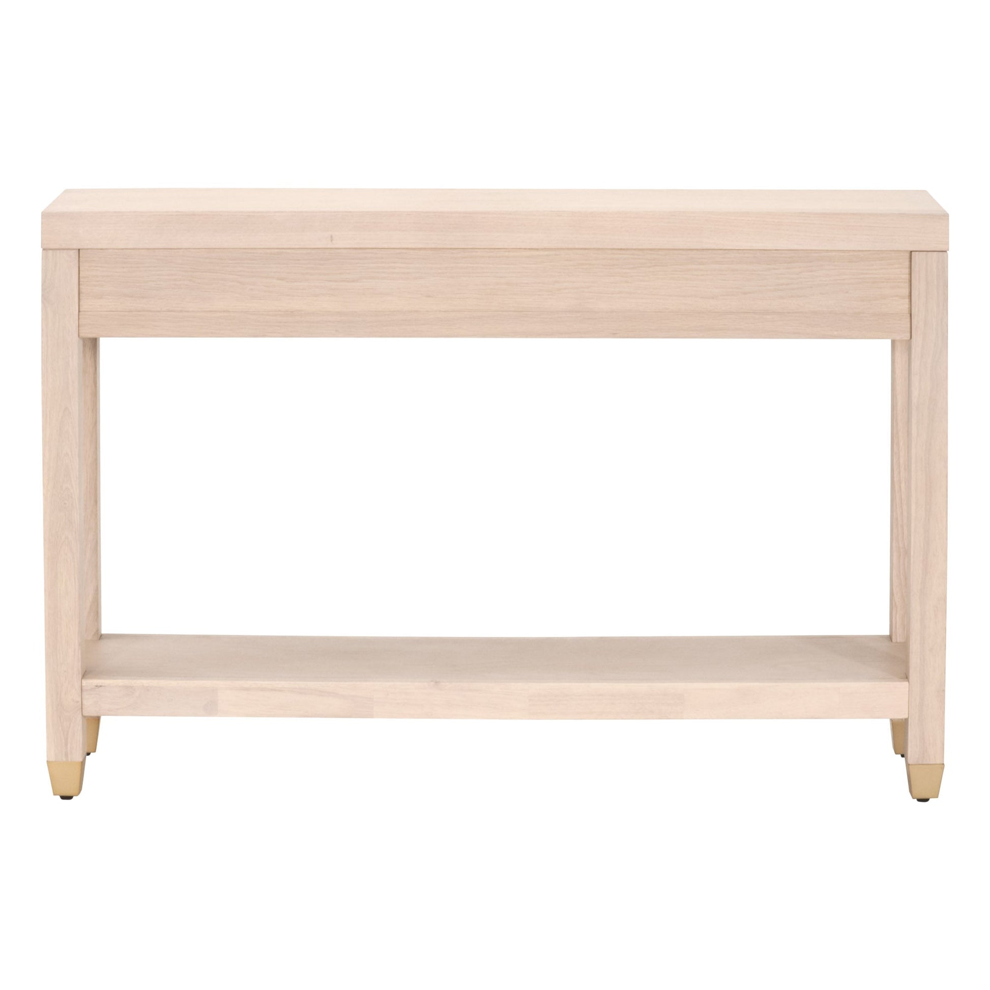 La console Stella d'Essentials For Living apporte une touche de simplicité et de sophistication à presque tous les espaces de vie. Réalisée en chêne miel clair et rehaussée d'élégantes ferrures en laiton brossé, elle s'intègre harmonieusement à une large palette de couleurs et de styles de décoration. Son cadre étroit mesure 120 cm de large, 28 cm de profondeur et 80 cm de haut, ce qui en fait un choix idéal pour les petits espaces.