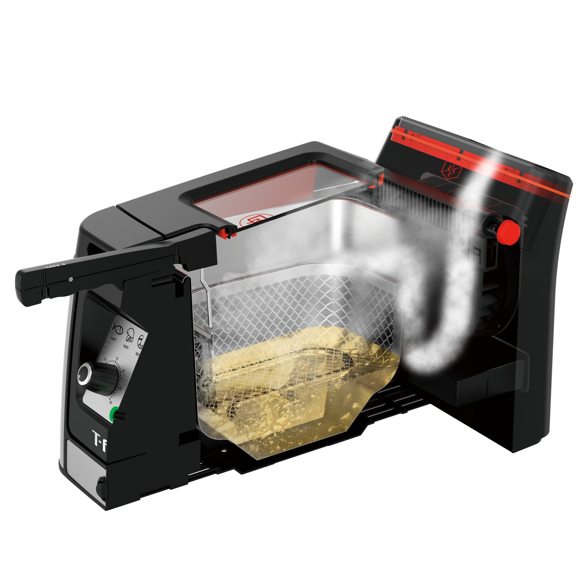 - Minuterie réglable : La minuterie réglable (jusqu'à 30 minutes) élimine les incertitudes, vous aidant à effectuer plusieurs tâches tout en faisant frire vos aliments à la perfection.