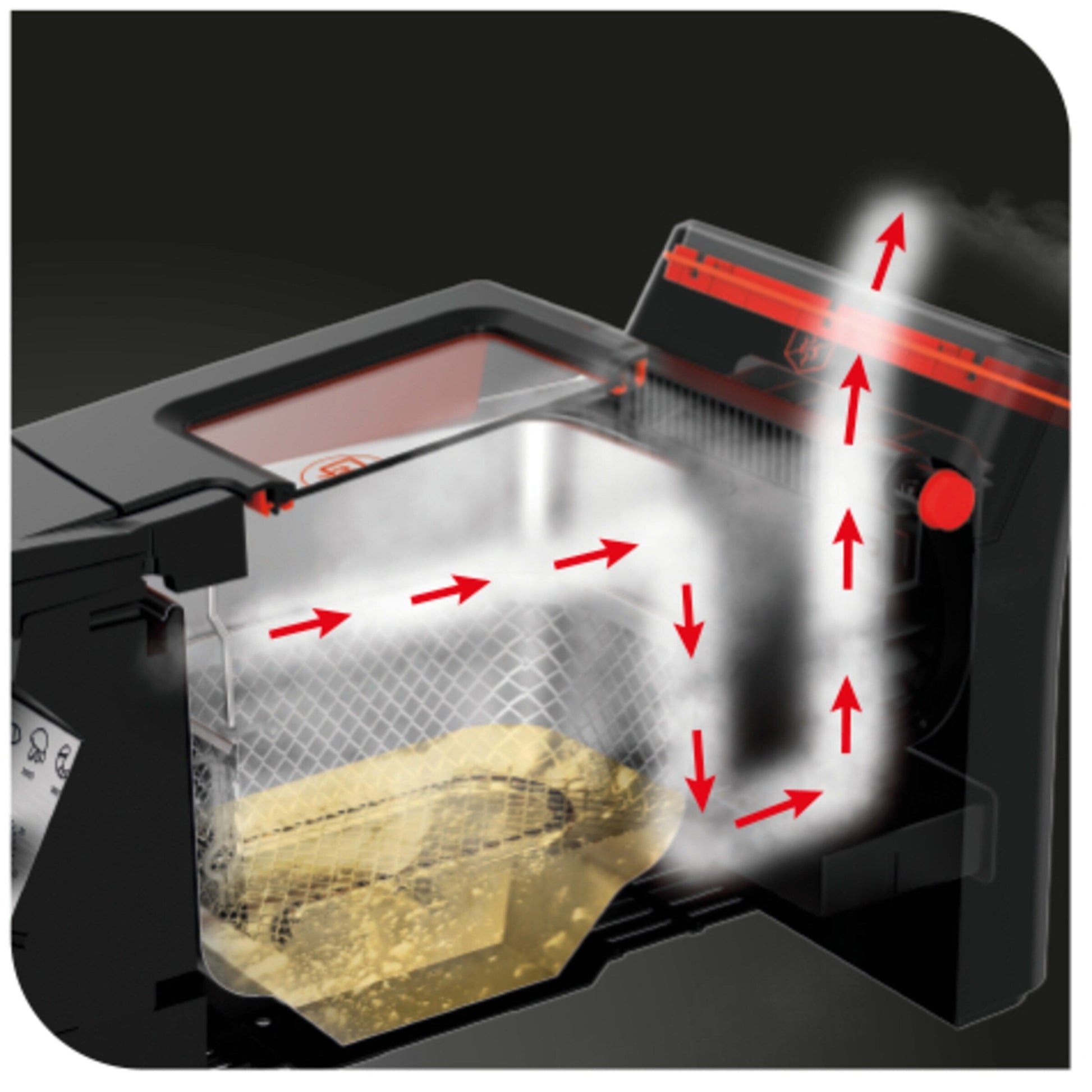 - La friteuse sans odeur T-Fal est conçue pour réduire jusqu'à 74 % des odeurs pendant la cuisson, grâce à son système de filtration active unique !* Vous pouvez désormais profiter de vos aliments frits préférés tout en réduisant considérablement les odeurs !