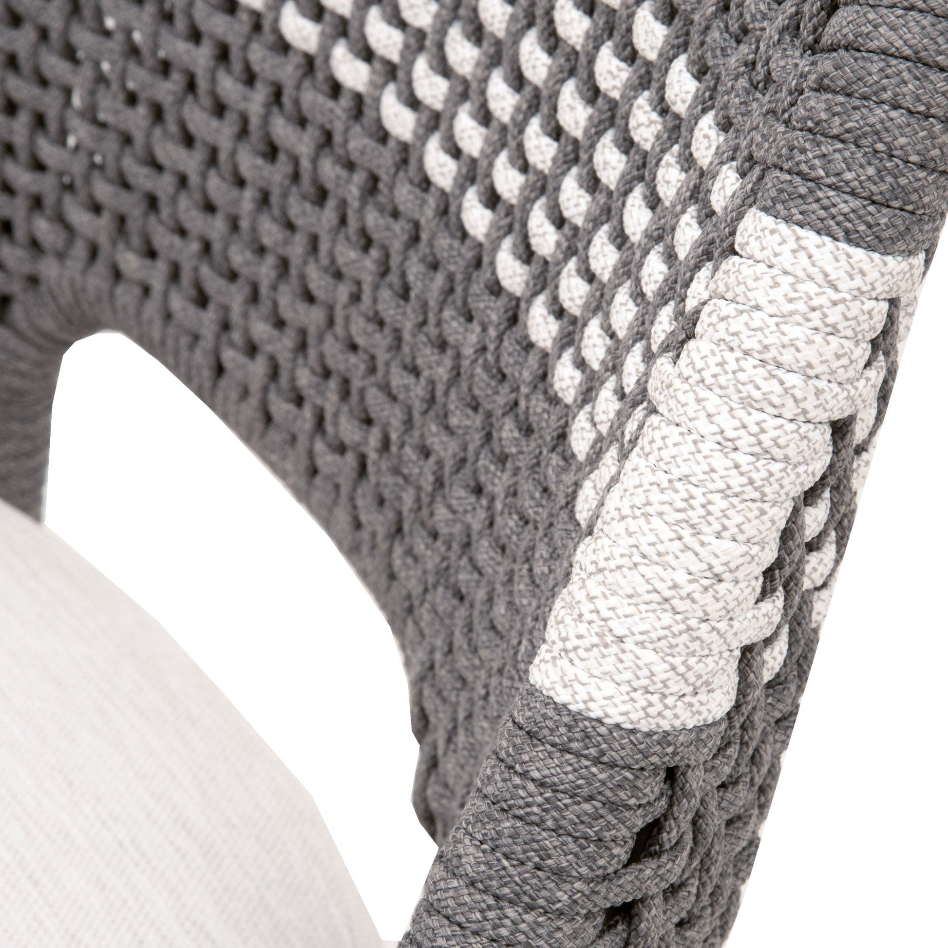 Ajoutez une touche de style côtier à votre cuisine ou à votre bar avec le tabouret Tapestry d'Essentials For Living. Ce tabouret de bar transitionnel arbore un magnifique motif de cordes entrelacées, réalisé en polypropylène massif taupe et blanc, qui s'harmonise parfaitement avec un piètement en acajou gris naturel. Conçu pour sublimer n'importe quel espace, il allie élégance et durabilité.