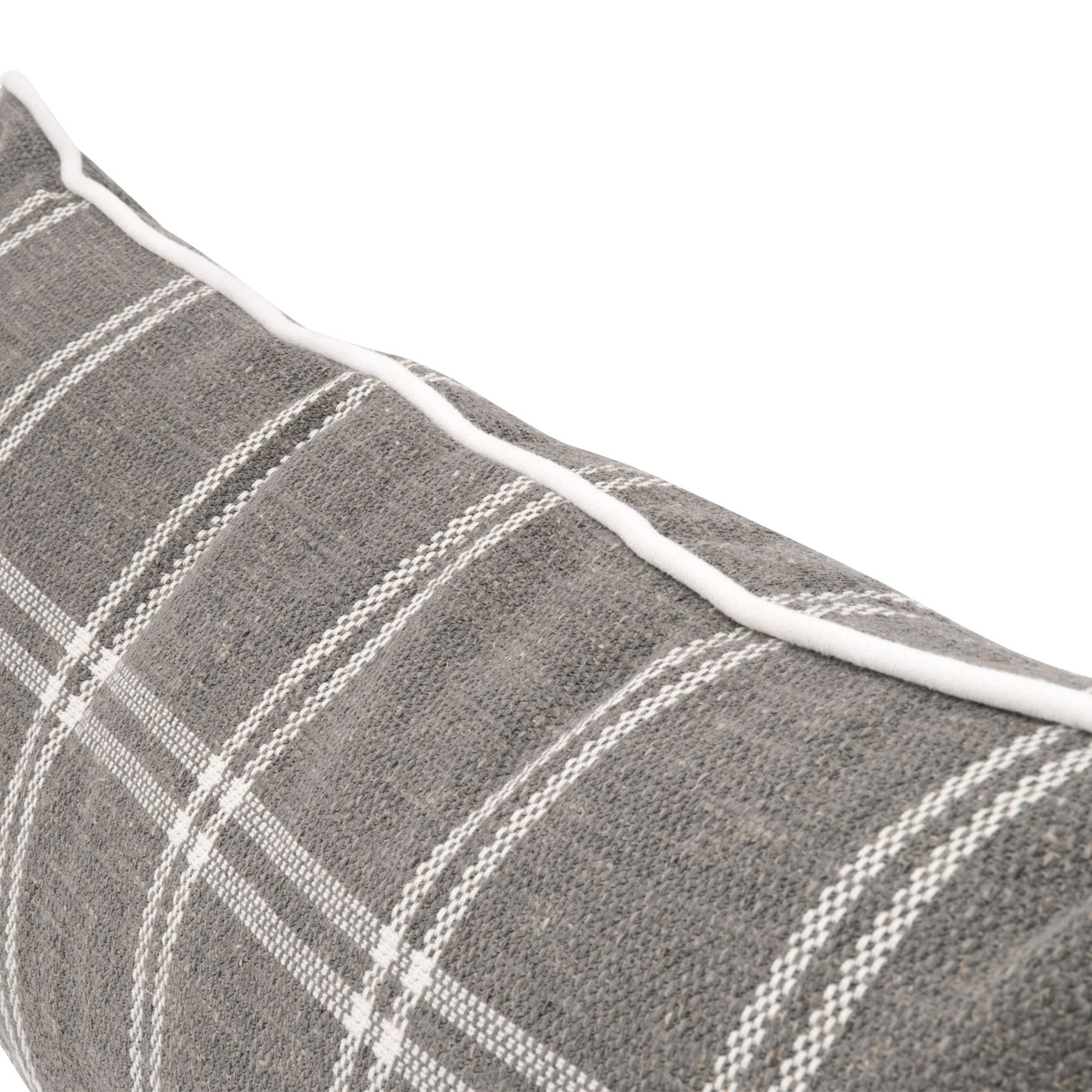 • Revêtement en tissu écossais gris et blanc LiveSmart avec passepoil contrasté en Machale-Ivory