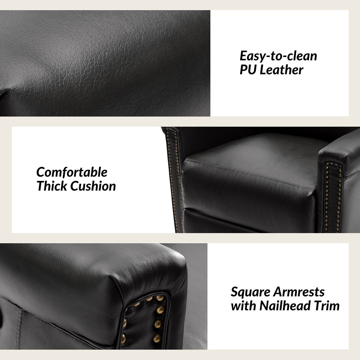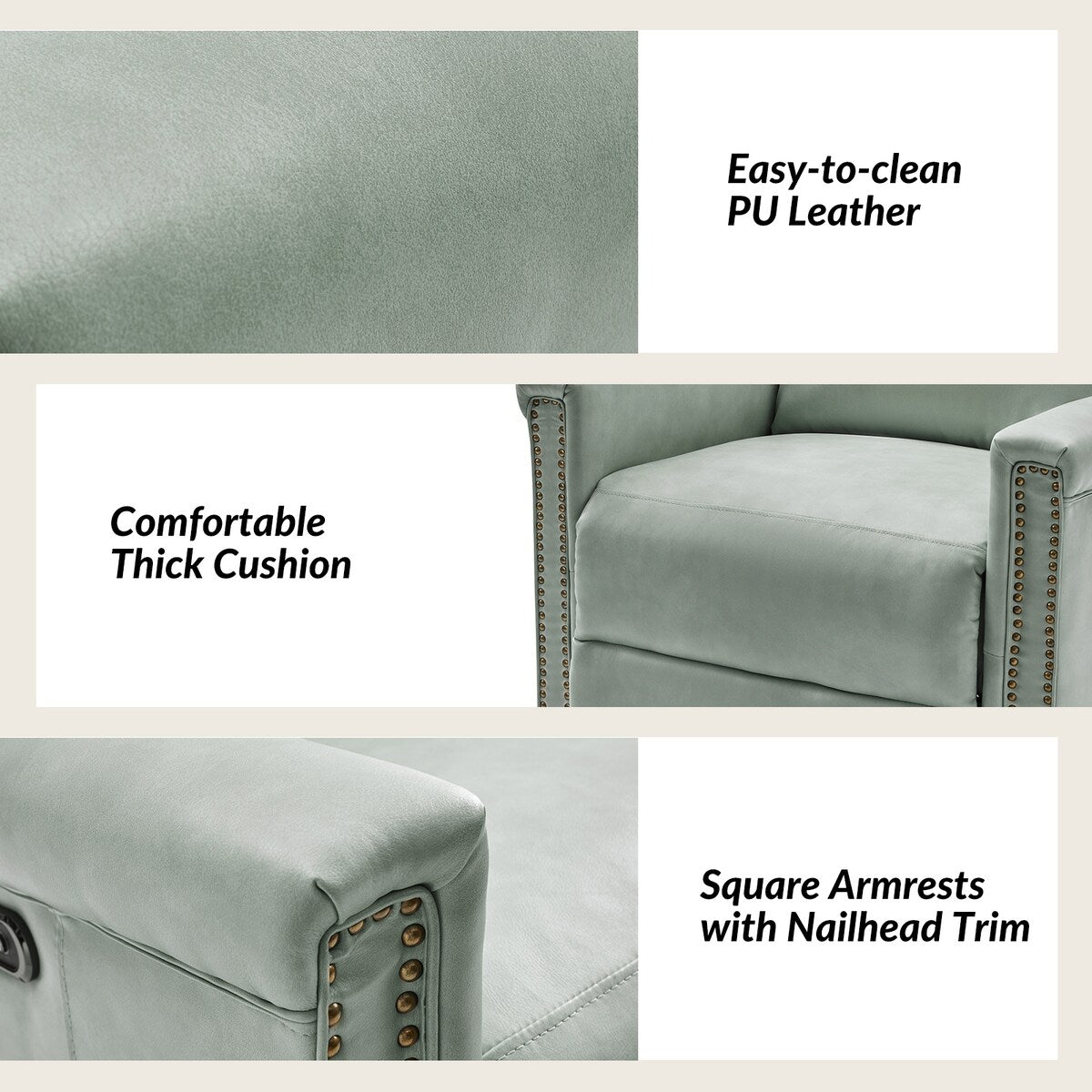 • Garniture de clous en cuivre : ornant les bords du cadre de l'ensemble de fauteuils inclinables, la garniture de clous en cuivre ajoute une touche de sophistication et de raffinement, accentuant le charme traditionnel de l'ensemble de fauteuils inclinables et conférant une esthétique luxueuse à la conception globale.