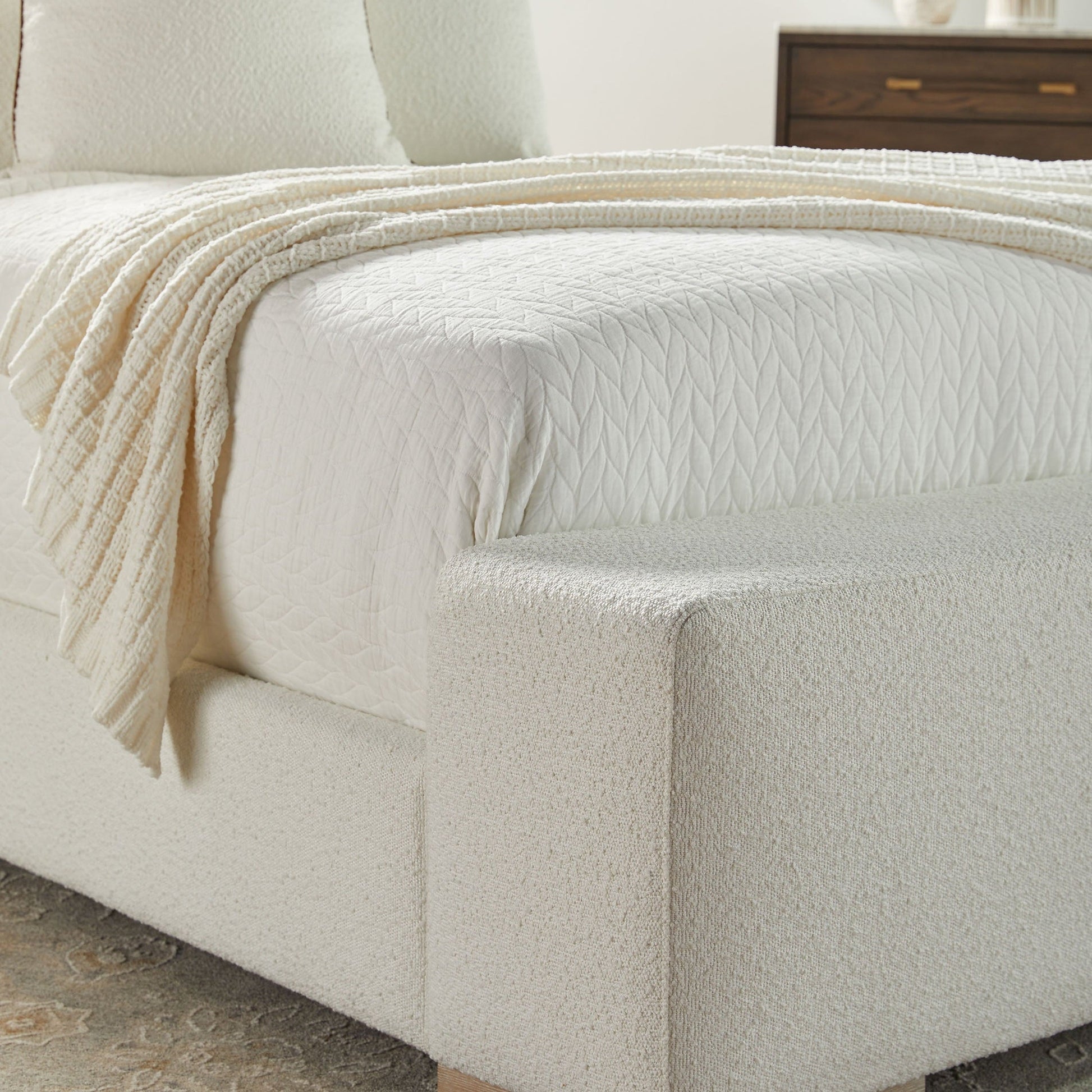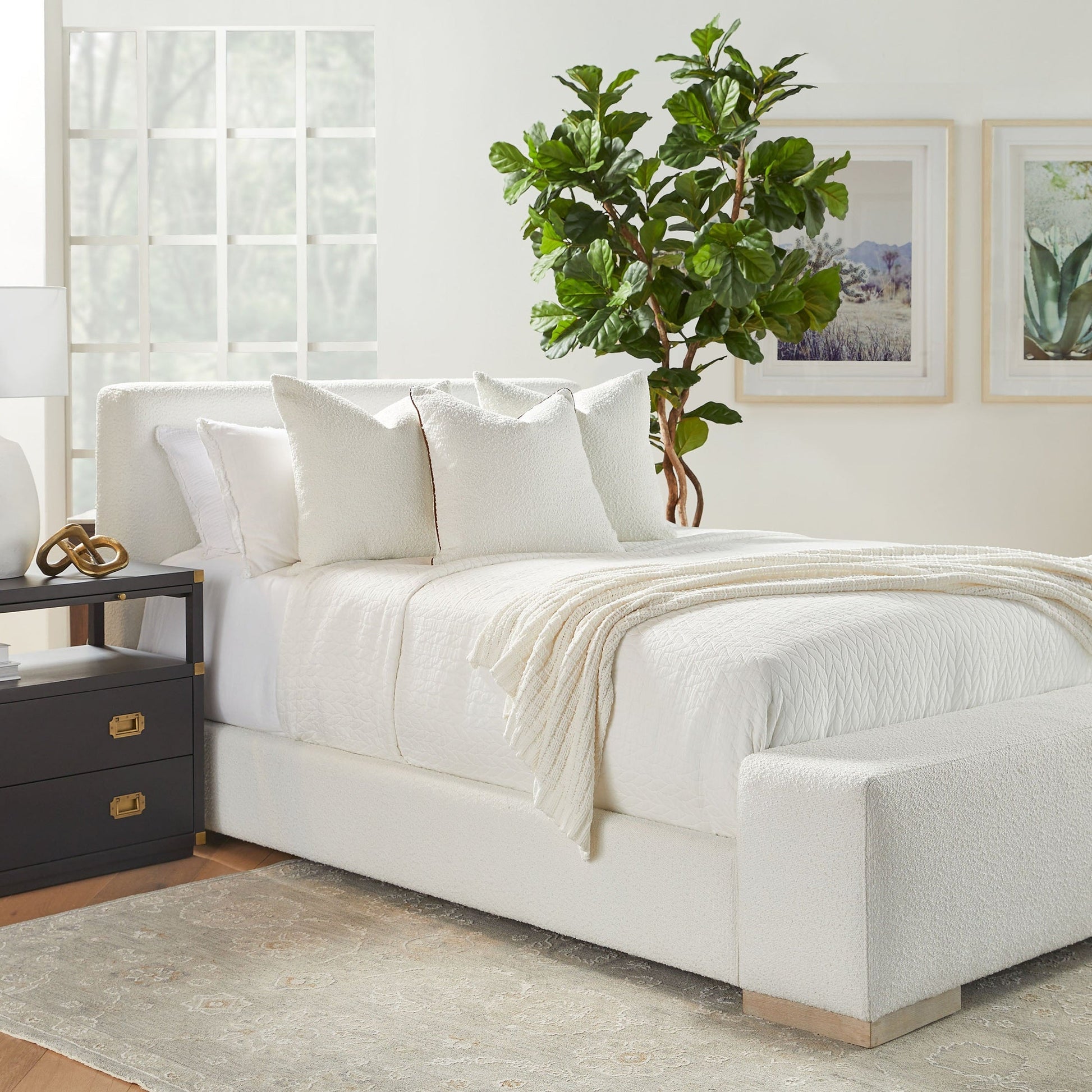Le lit queen-size rembourré Warren d'Essentials For Living apporte à votre chambre un design à la fois simple et raffiné grâce à sa silhouette épurée et classique. Revêtu du tissu haute performance LiveSmart Boucle-Snow White, ce cadre de lit transitionnel présente une finition texturée unique, à la fois durable et facile d'entretien.