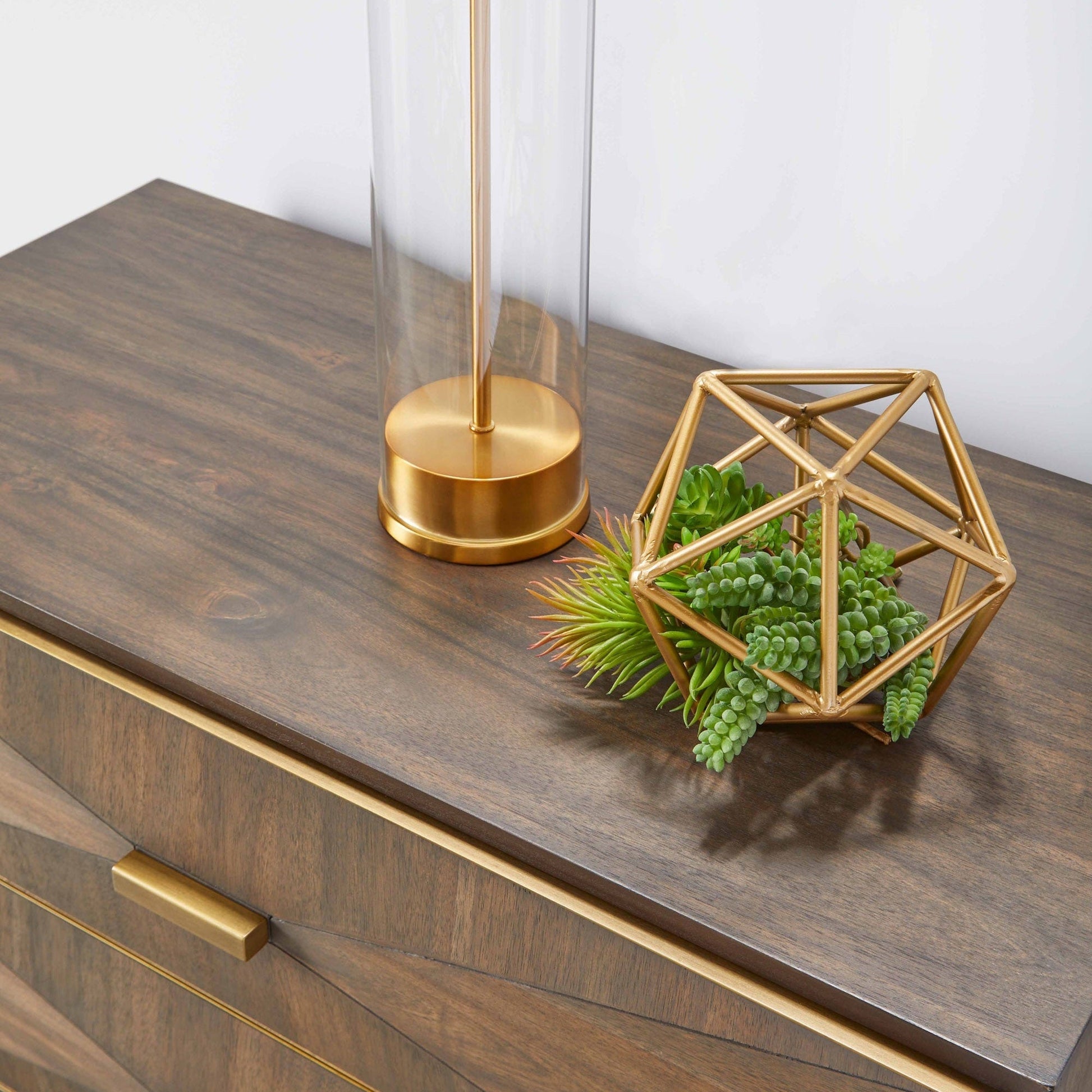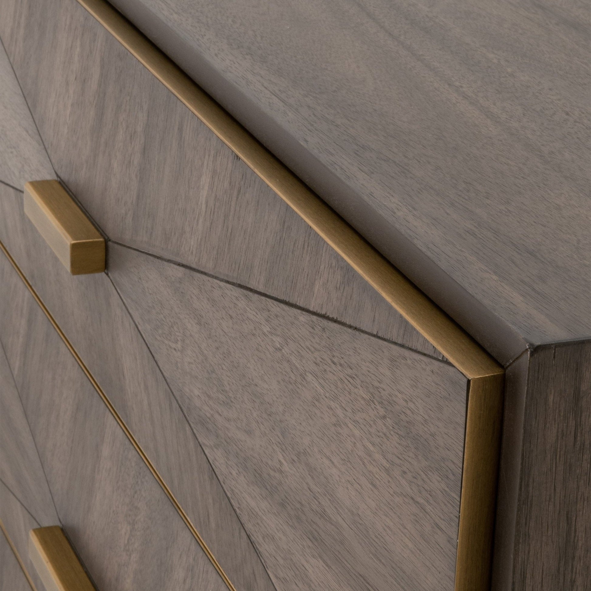 Placage d'acacia brun bruni et or brossé | Façades de tiroirs dimensionnelles | Élégance transitionnelle