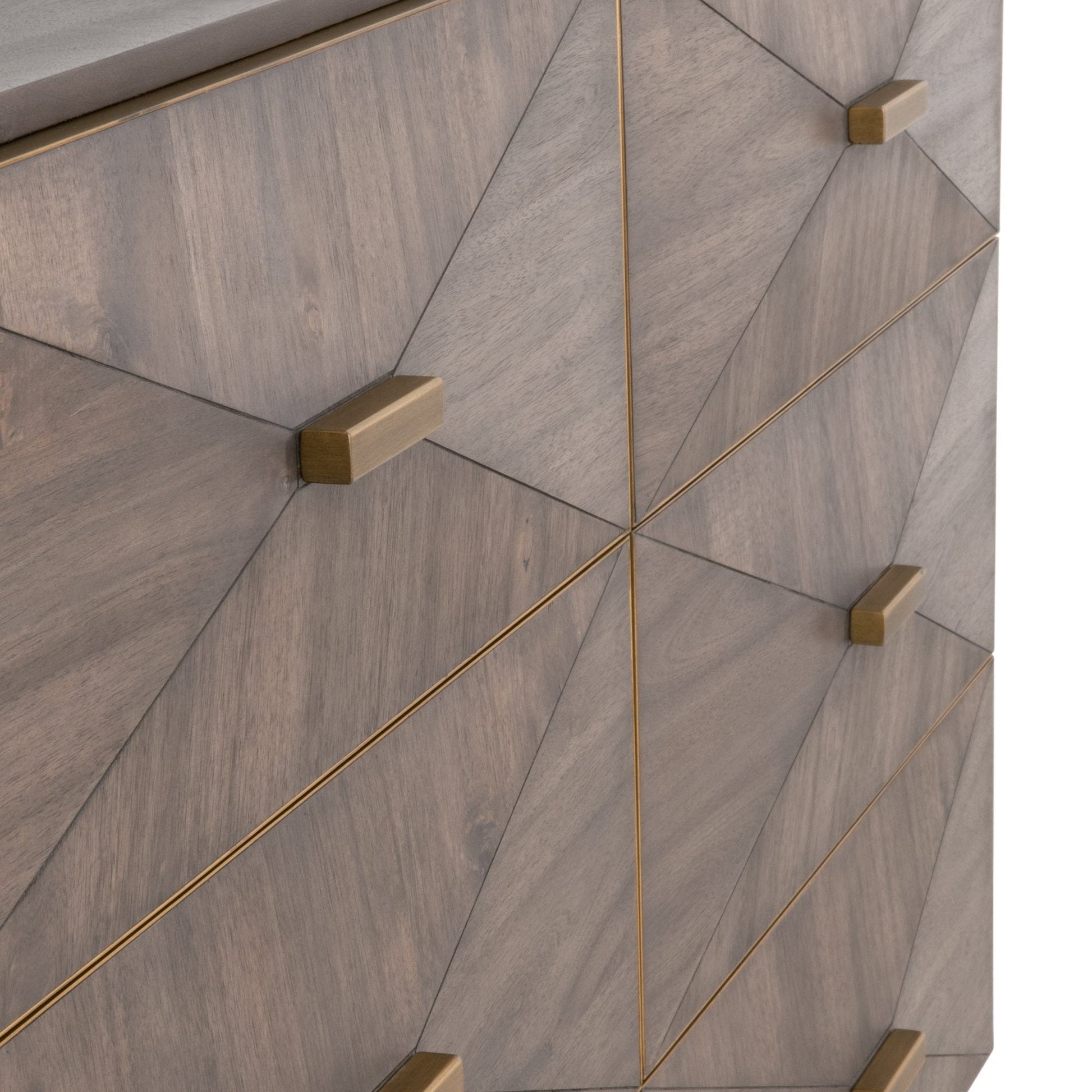 Six tiroirs spacieux offrent un espace de rangement généreux pour les vêtements et les essentiels, encadrés par une bordure dorée brossée et rehaussés de poignées rectangulaires dorées raffinées . Son style transitionnel s'intègre parfaitement aux chambres classiques, modernes ou d'inspiration rustique.